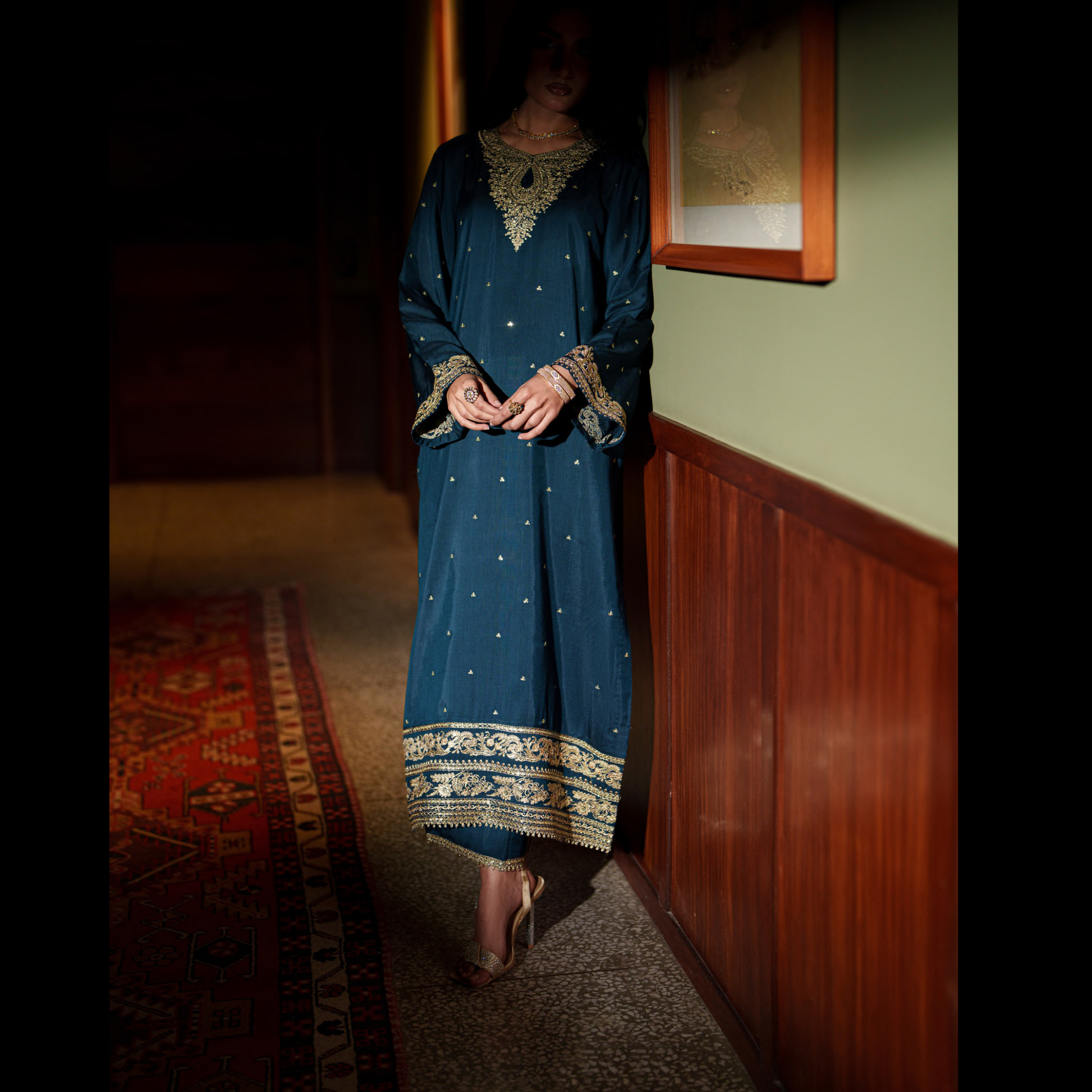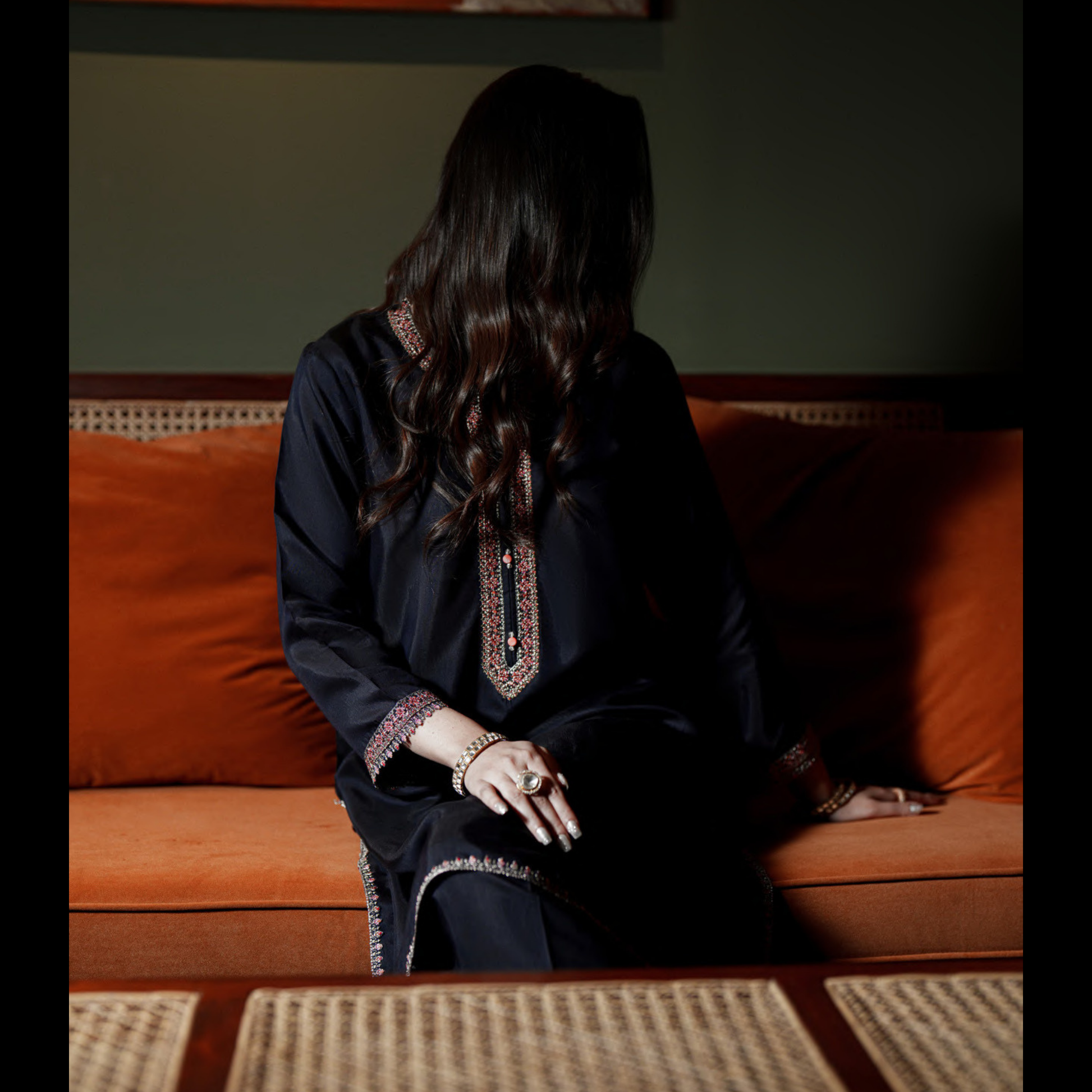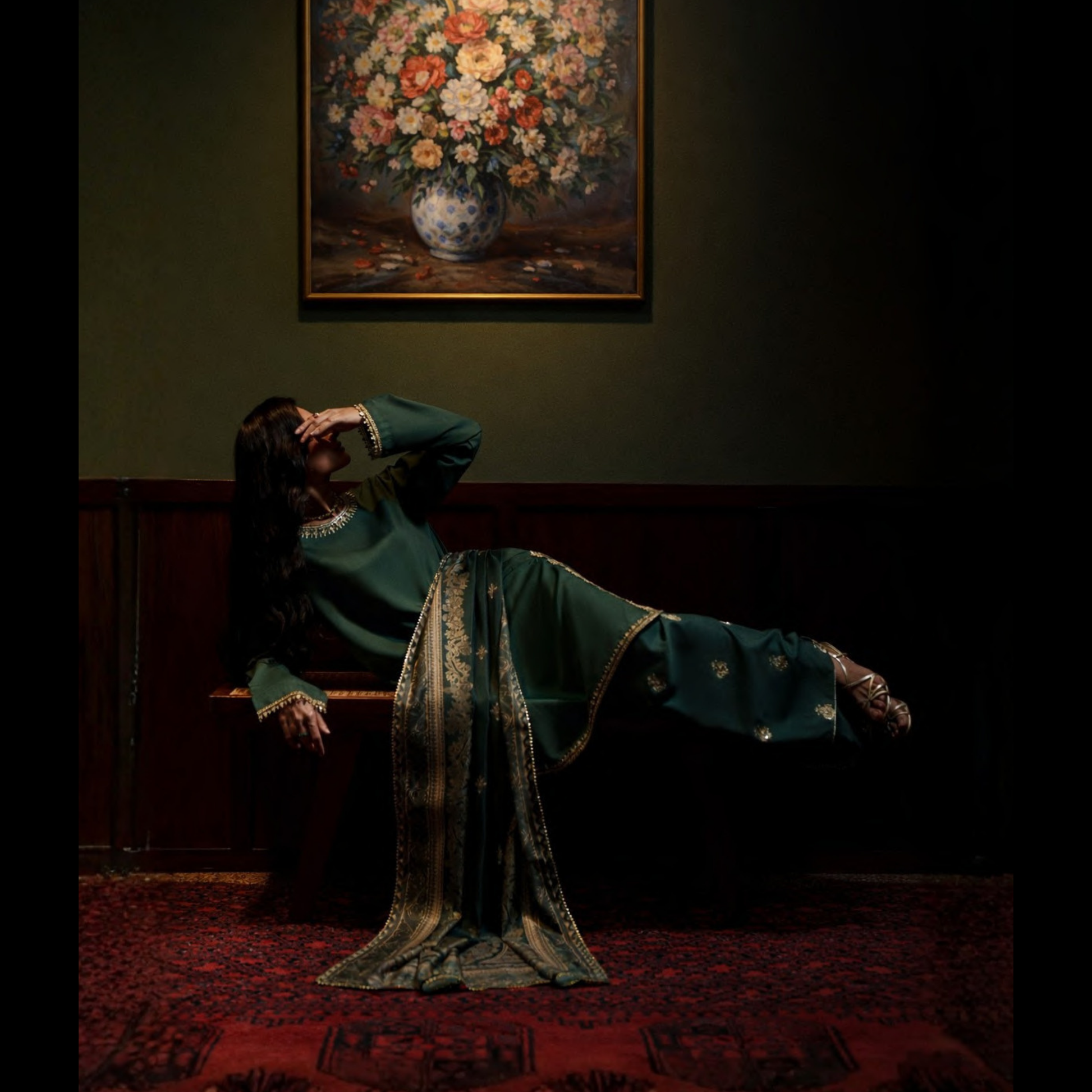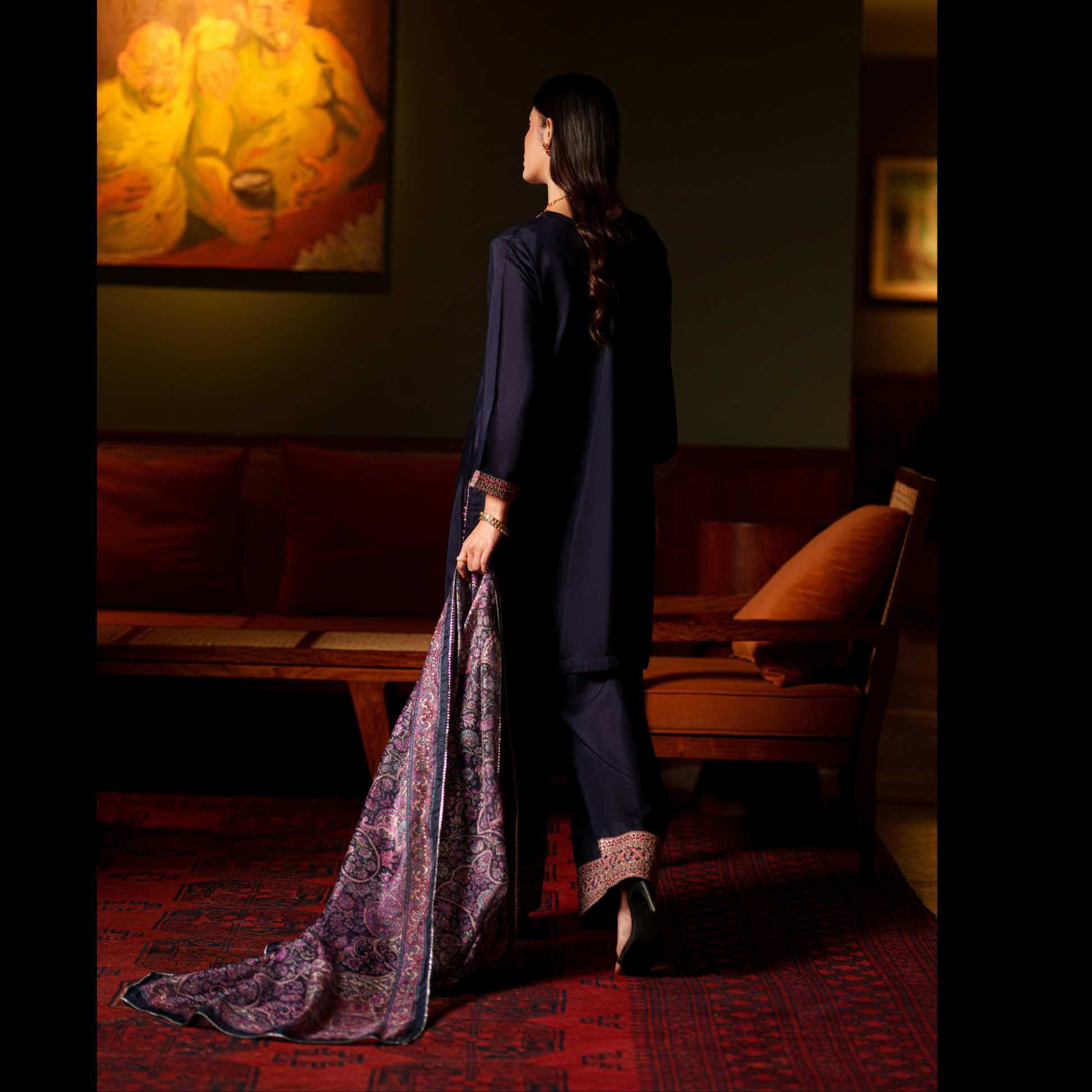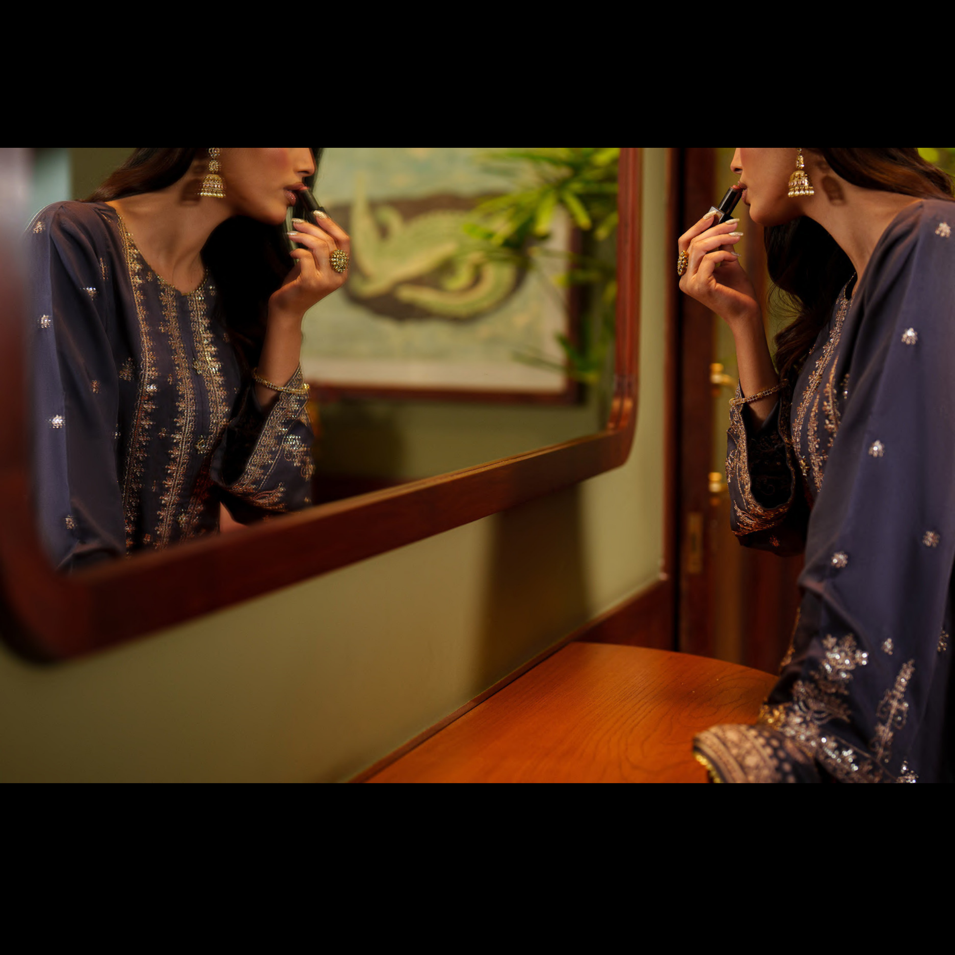 Introducing ELARA Luxury Festive ’26 Collection by Casuallite. A timeless celebration of elegance and refined craftsmanship, this embroidered viscose dress paired with a printed silk dupatta is designed to make every festive moment unforgettable. Crafted from premium quality viscose fabric, the shirt features intricate embroidery across the neckline, front panel, and sleeves, enhanced with delicate detailing that adds depth and richness to the overall look. The soft, breathable texture of viscose ensures comfort while maintaining a graceful fall that flatters every silhouette.