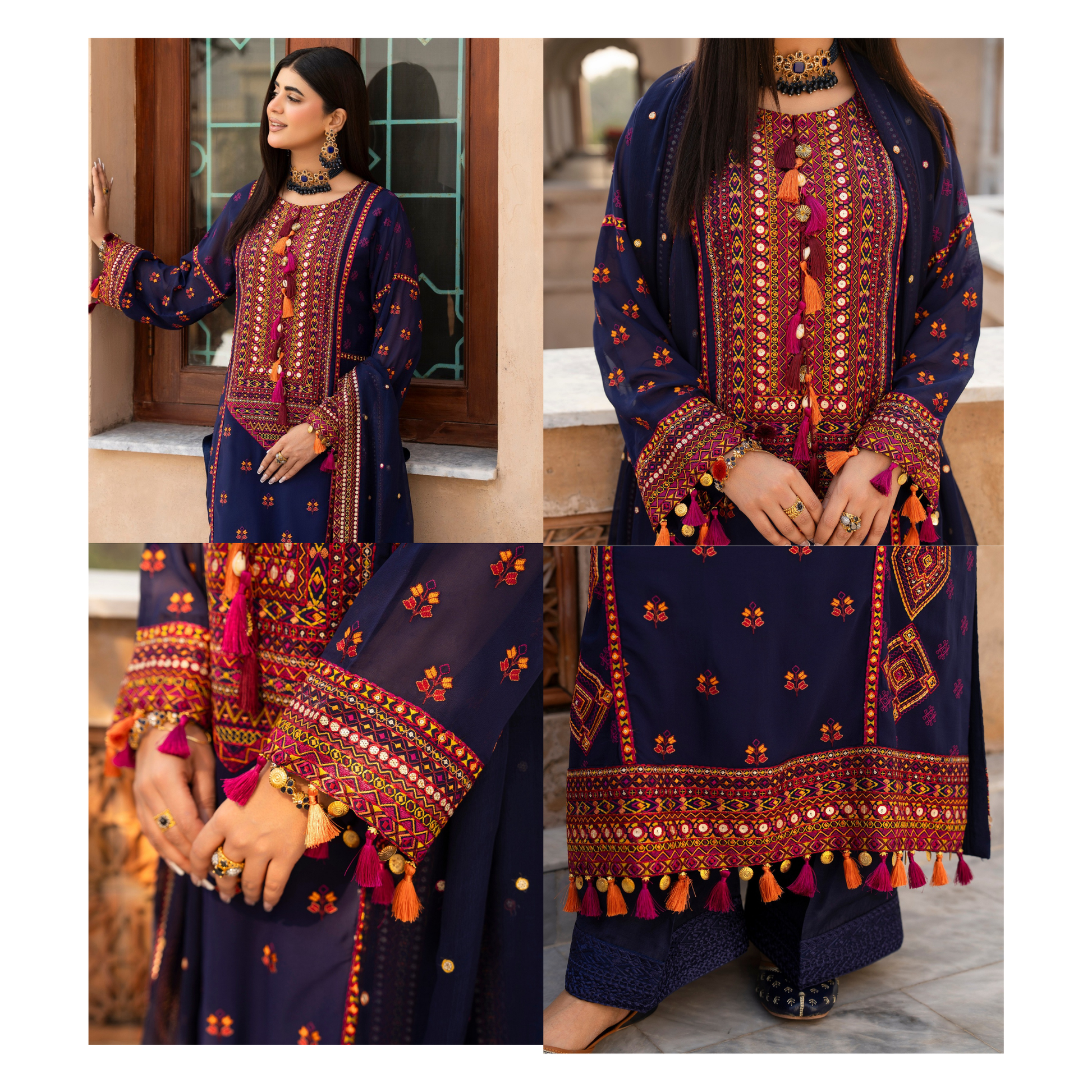 ● Tussels, Seep and Dori work on Neckline, Sleeves and Border