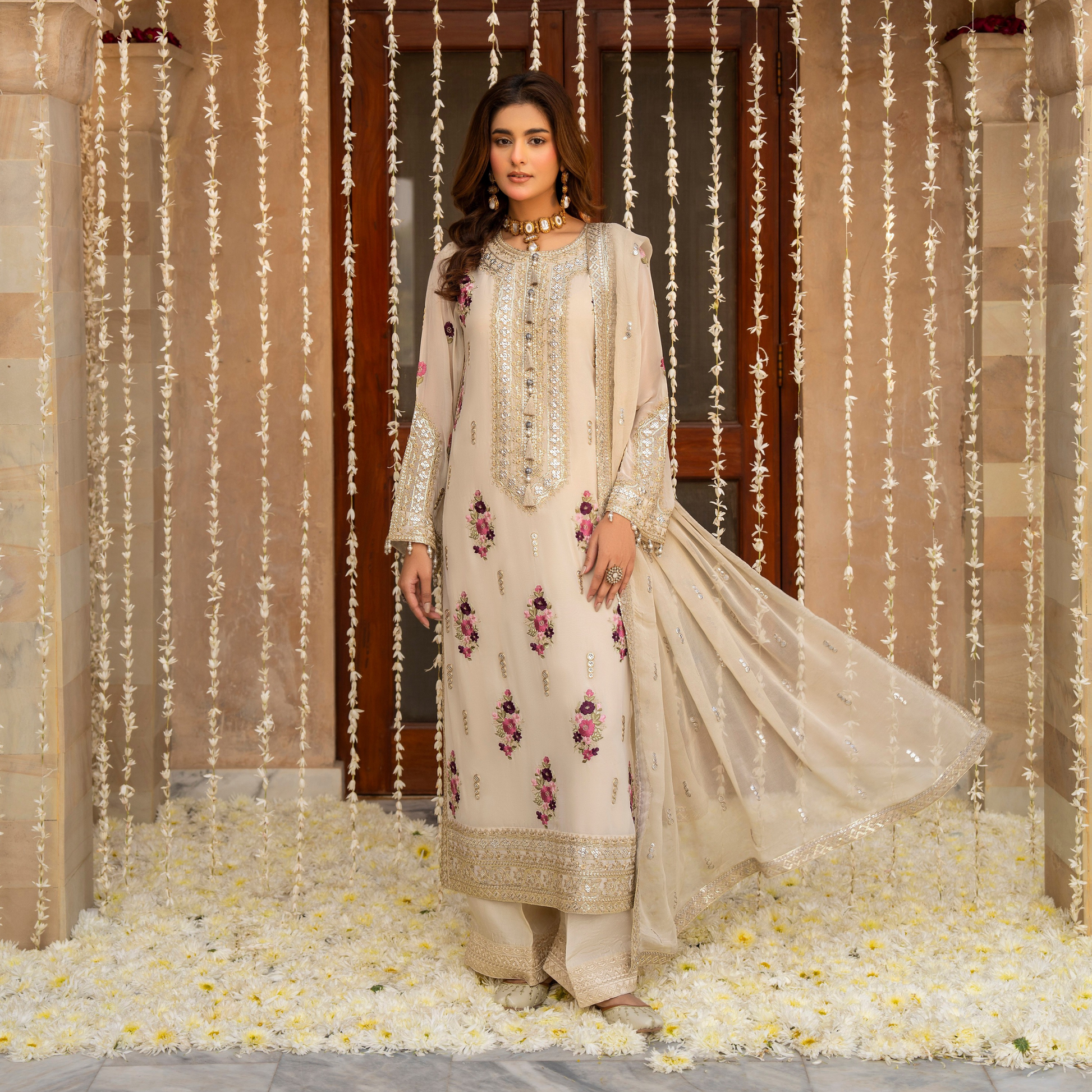 F-496 "Hayat" Embroidered Georgette Chiffon 3 Pc Collection
