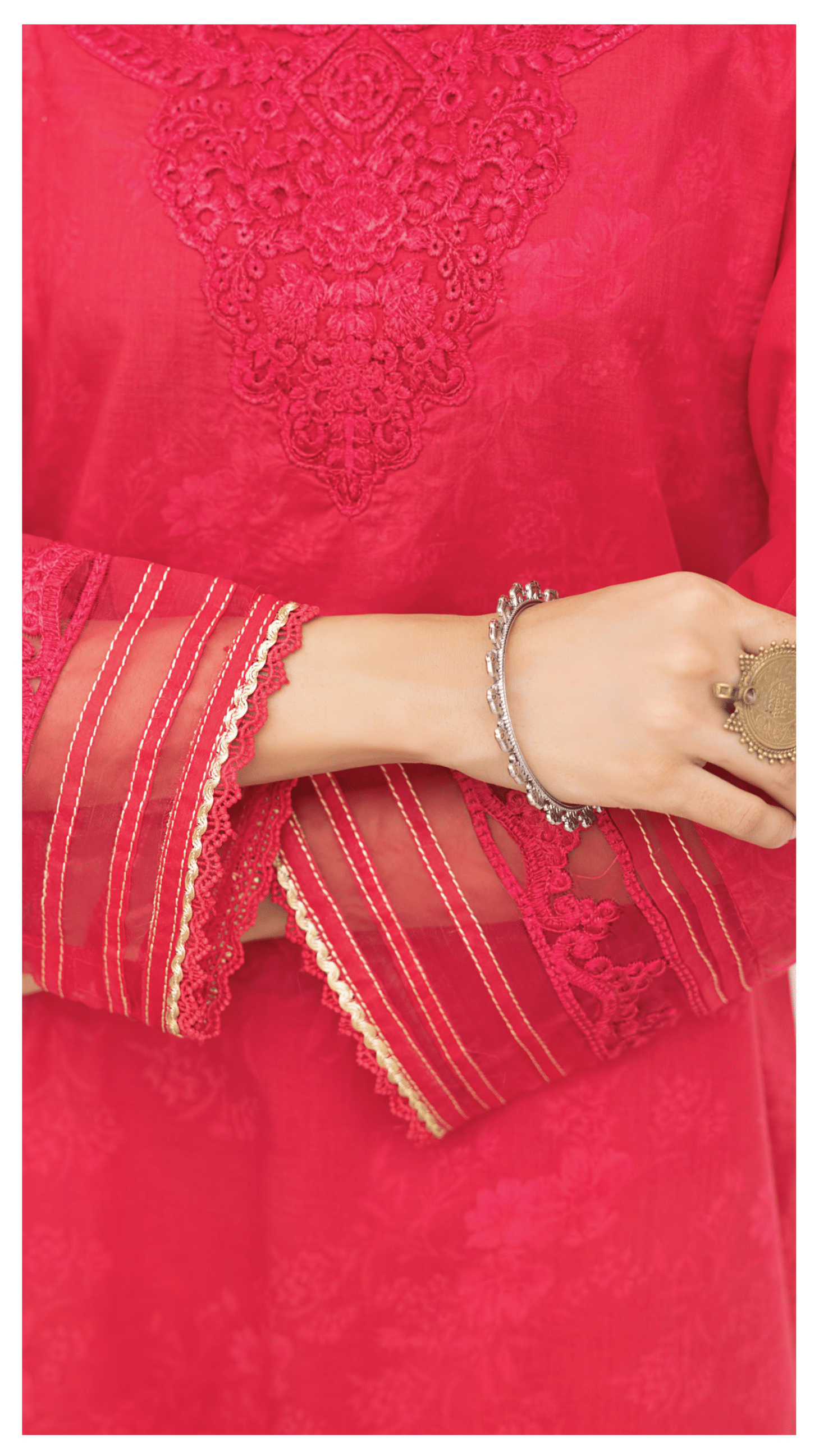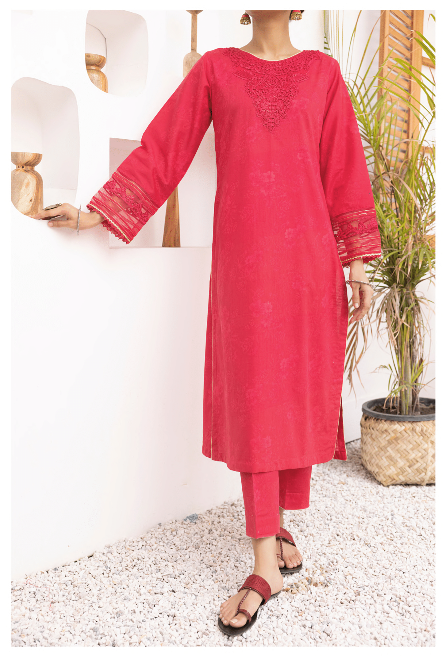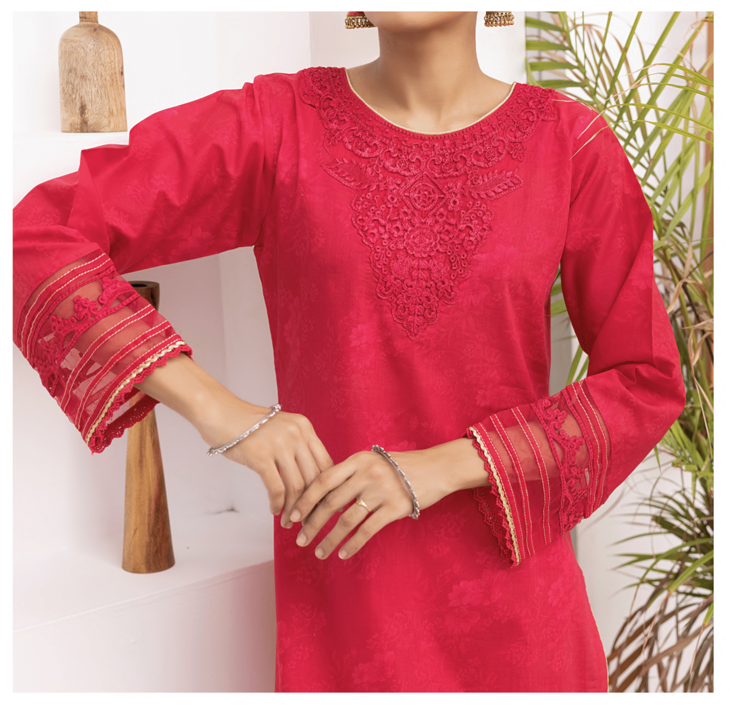 Hot Pink 2 Pc Embroidered Printed Cotton Lawn Solid Outfit - Casuallite