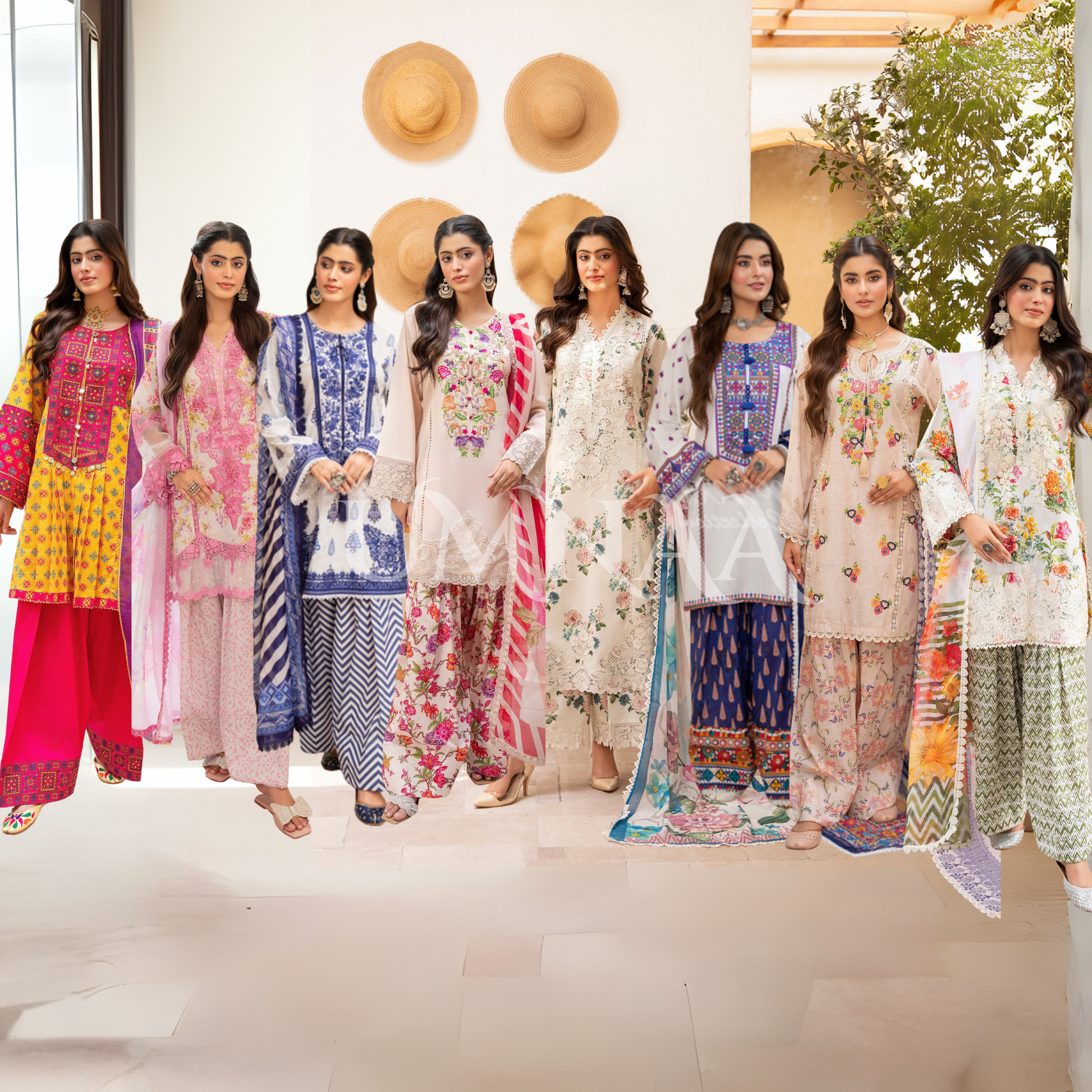 Introducing this stunning Lawn Collection — a beautiful fusion of comfort, color, and classic style. Crafted from breathable Lawn, each outfit features elegant prints and delicate embroidery, making them perfect for everyday elegance or festive wear.
