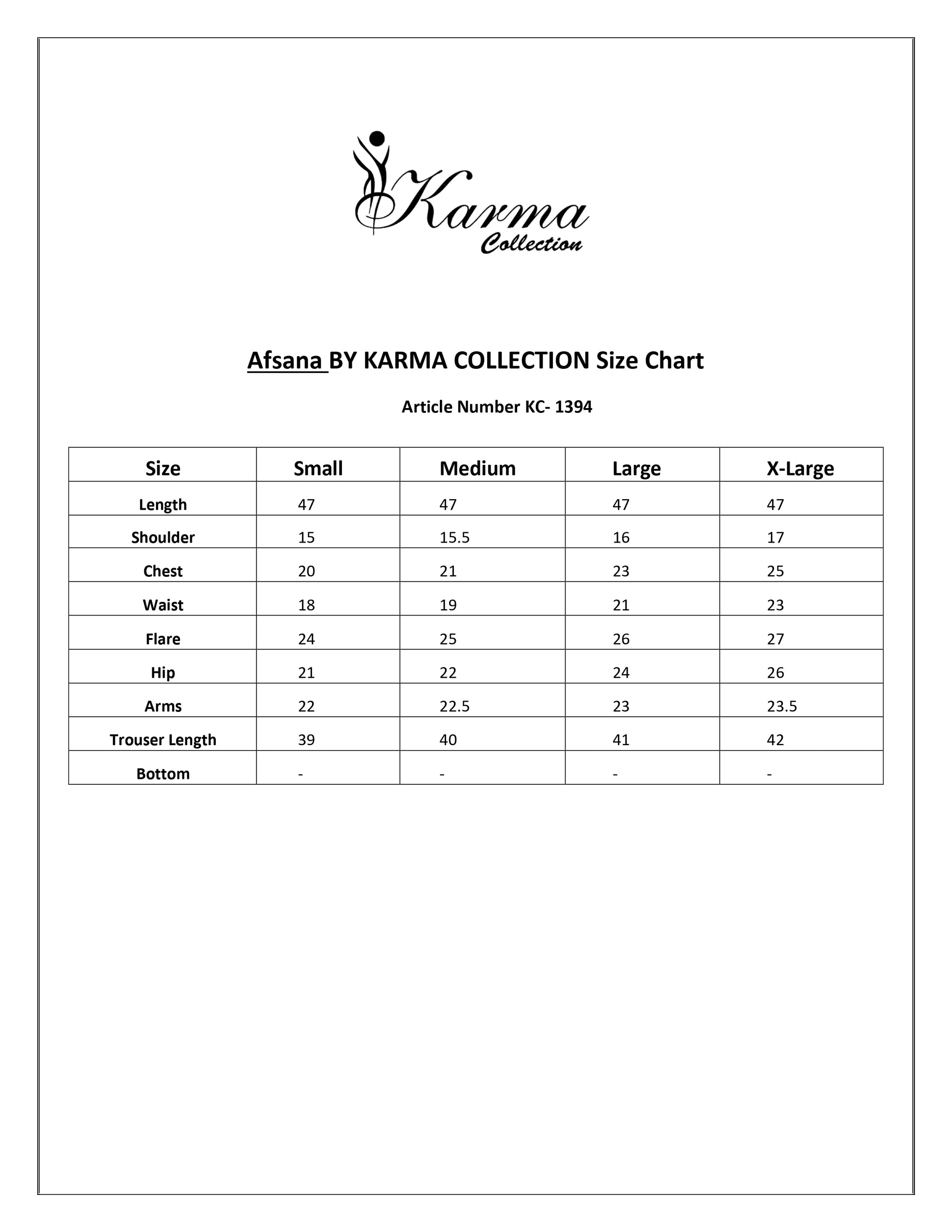 This is an Chikankari Embroidered Cotton lawn Kameez/Shirt . Printed embroidered khaddi Lawn Dupatta And Dyed Cotton Lawn Trouser. Embroidery in ll Chest/Neck/Daman/Sleeve. Our Afsana karma Collection Ready to Wear Pakistani designer Clothing Brand Collection are Made and Stitched With High Grade Fabrics and thread. Cotton lawn Beautiful Embroidery Shirt Festive Party Wear Dress. Look beautiful and stunning in our party wear (Three) 3 piece. The Dress added to your wardrobe, will always be your first choice to wear. Fabric Cotton Lawn . Attractive Design & Perfect Finishing Size Chart: