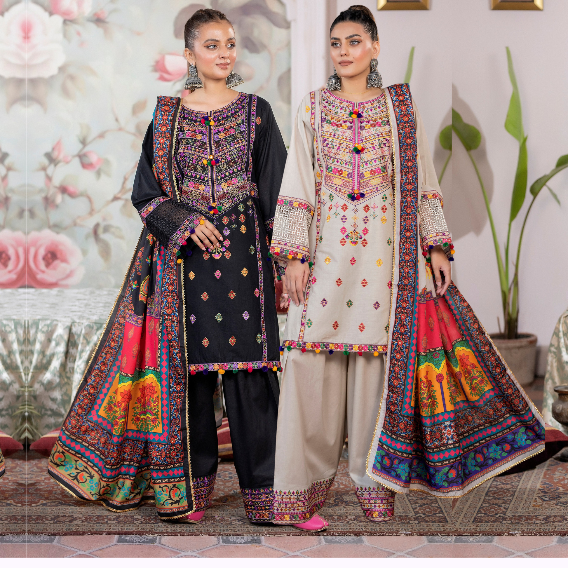 KC-1454 Trendy farshi Shalwar Embroidered Cotton Collection Ready to Wear 3 Pc - Karma Collection