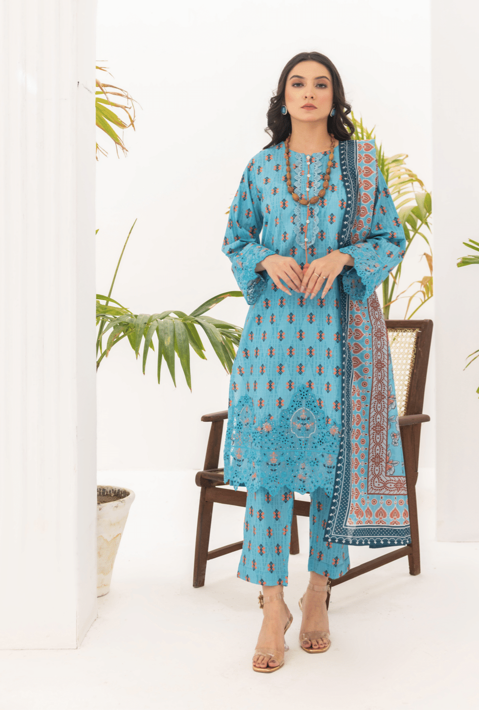 (LIGHT BLUE) Embroidered 3 Piece Lawn Dress - Zainab Fazlani