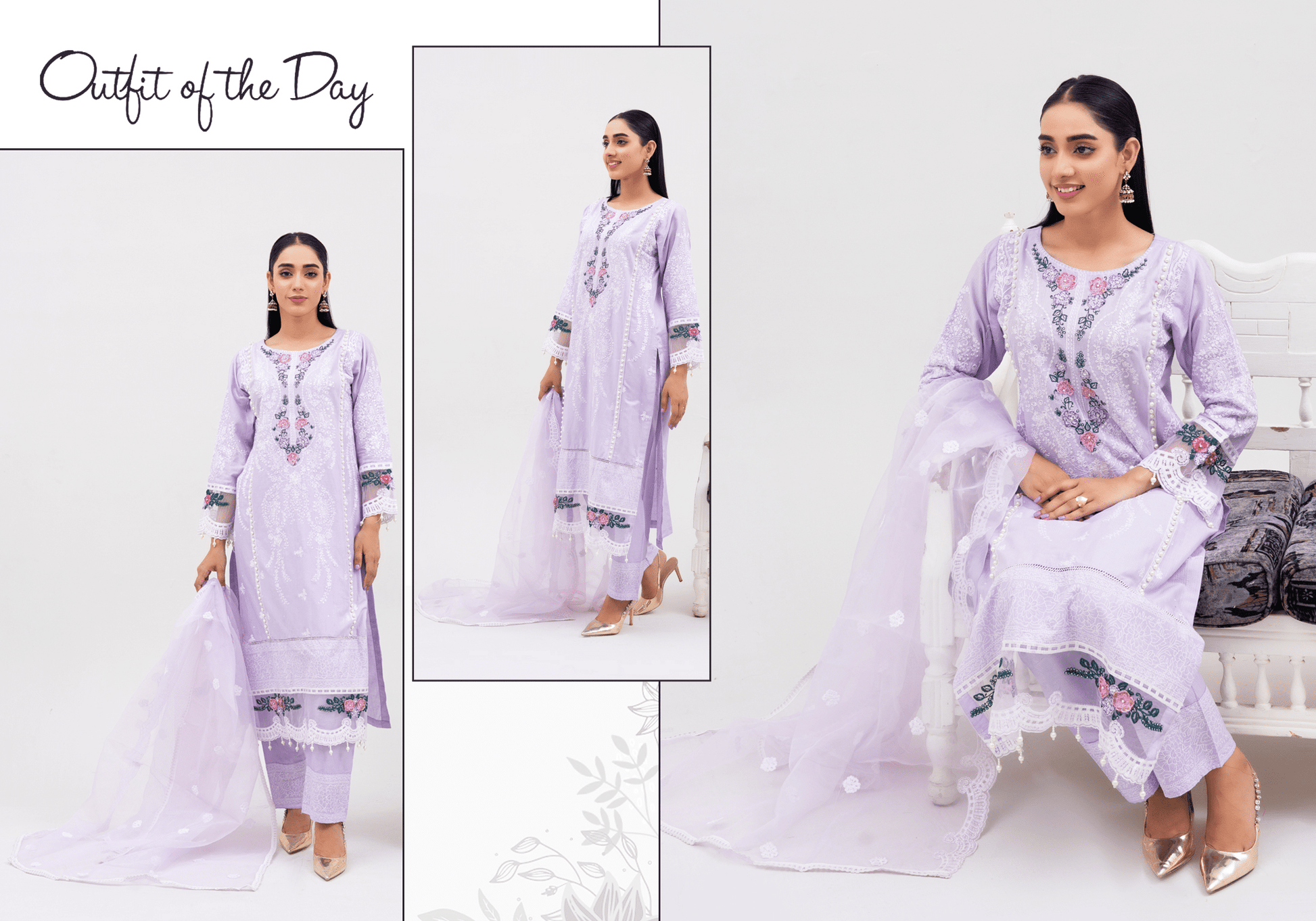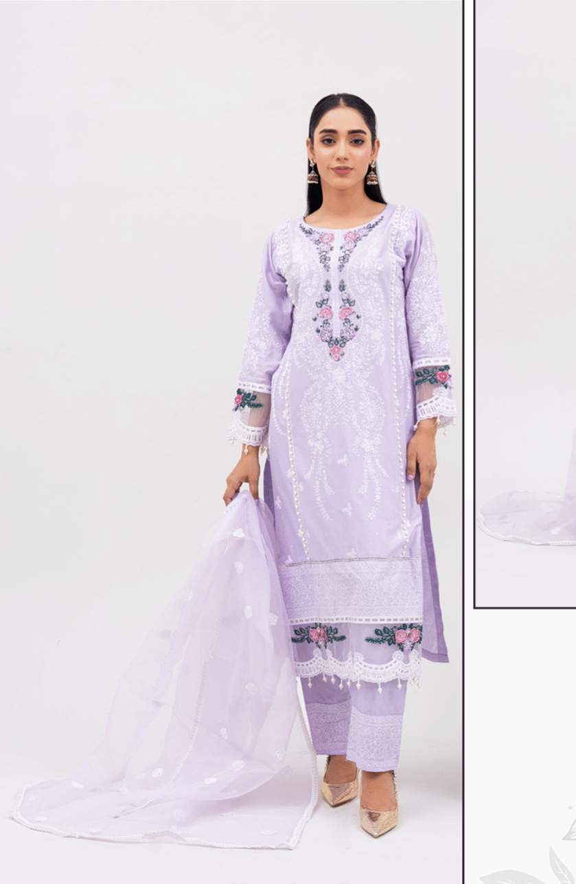Lilac 3 Pc Embroidered Lawn Collection-Rangz