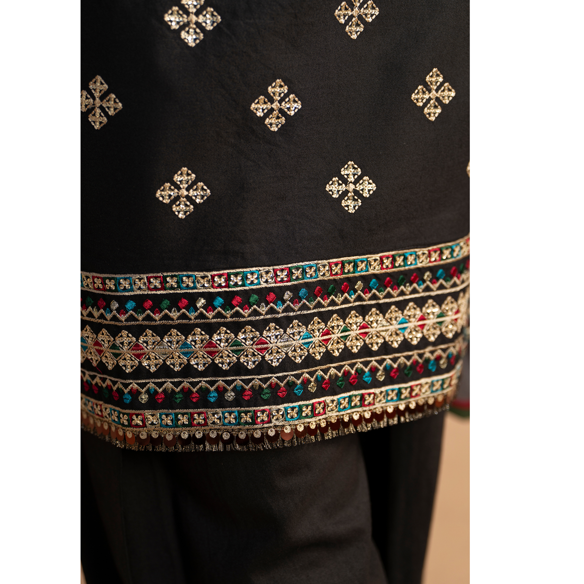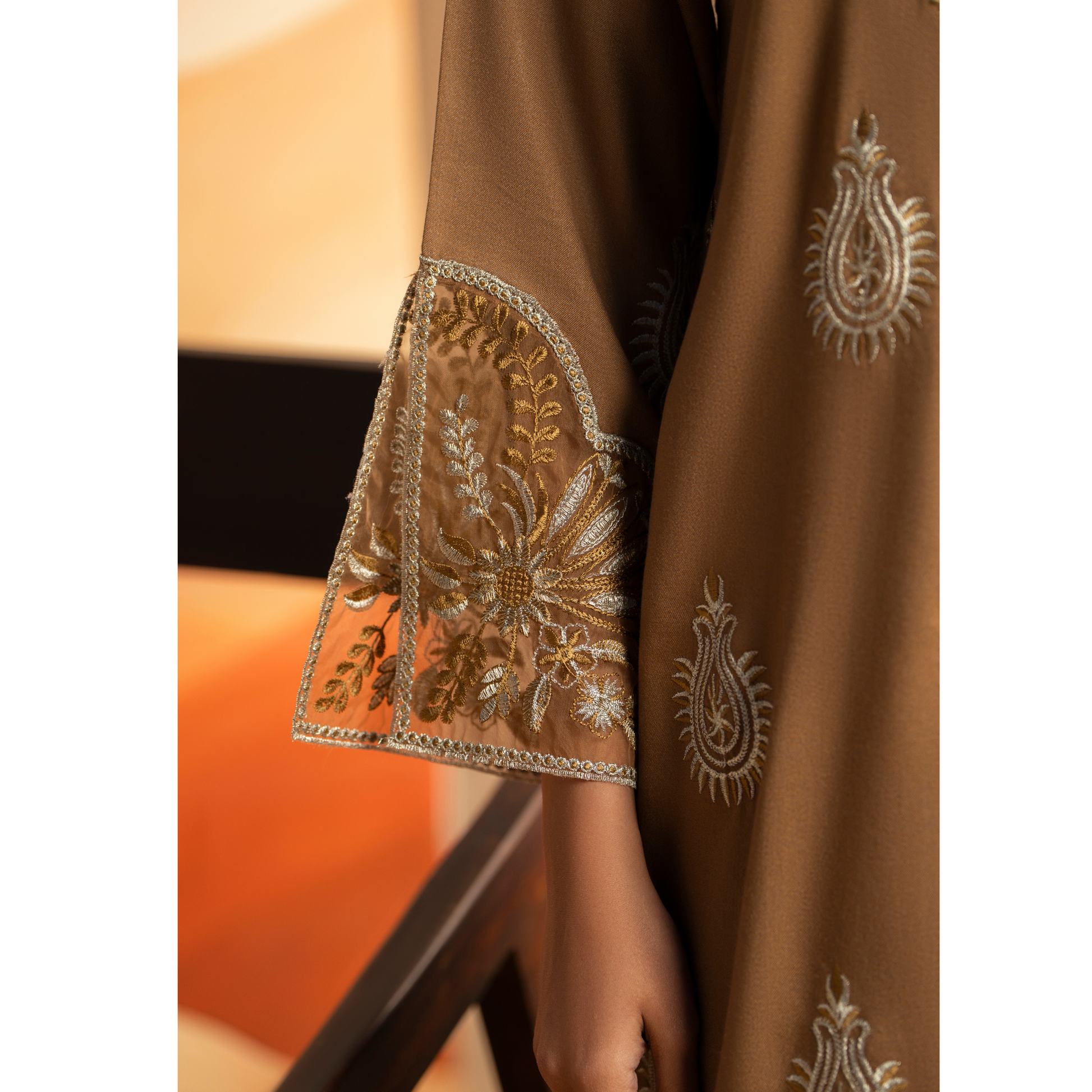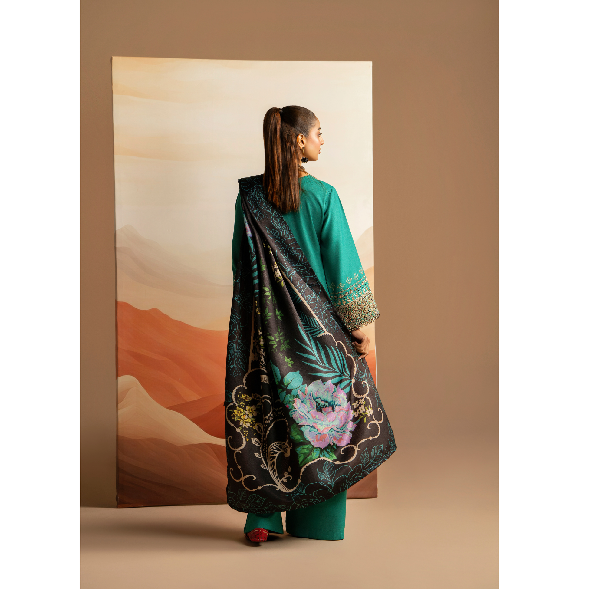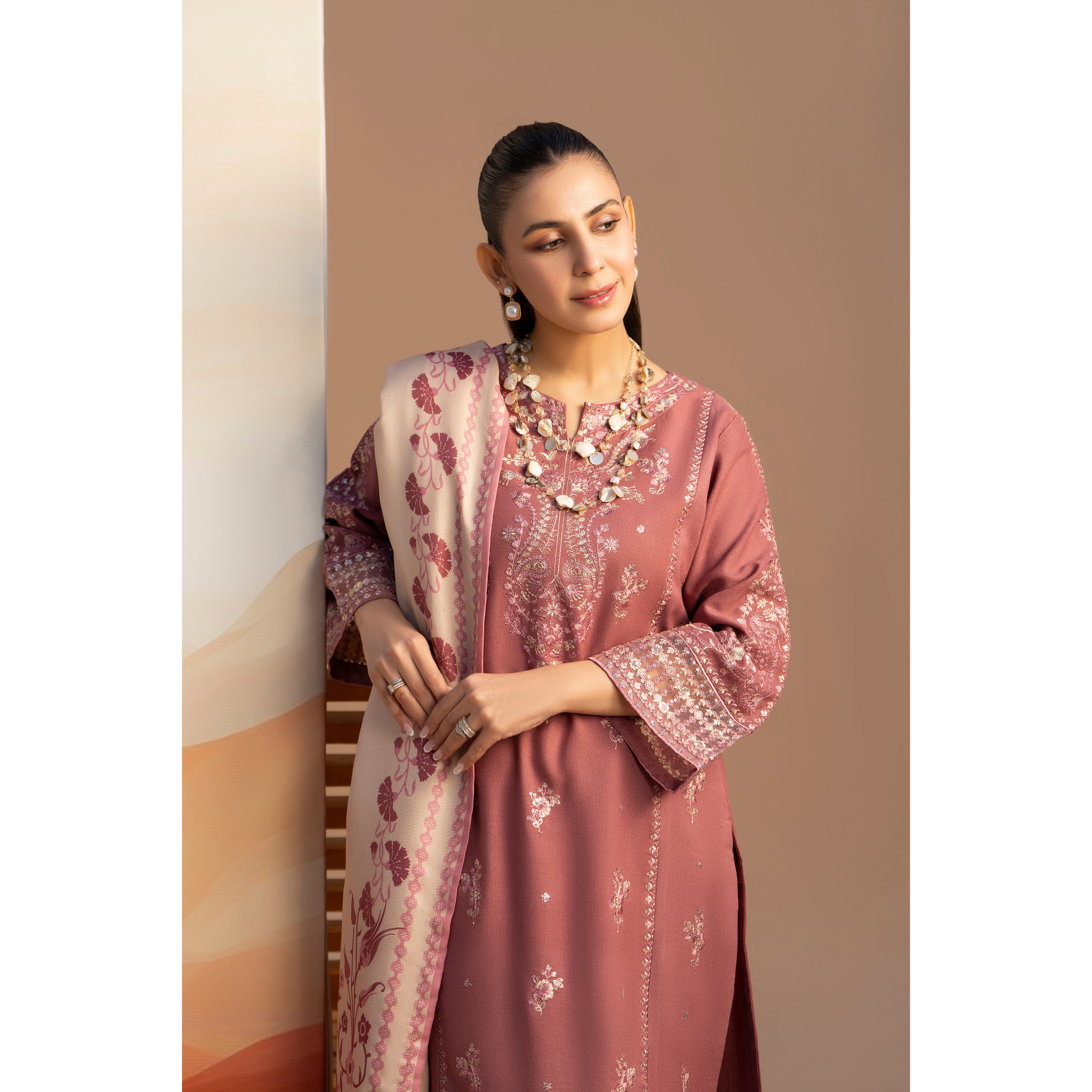 Experience the perfect blend of comfort and elegance with our Embroidered Dhanak Dress, beautifully paired with a Pashmina Grip Duppata . The shirt is crafted on soft Dhanak fabric, adorned with rich embroidery that enhances its winter charm. Its detailed motifs and refined borders create a timeless, luxurious look ideal for the season. The matching Dhanak trouser/Farshi Shalwar completes the outfit with a cohesive, warm feel. Draped over it is a stunning Pashmina grip Dupatta's traditional patterns that add depth and sophistication while keeping you cozy. This ensemble captures the true essence of winter style—warm, graceful, and effortlessly classy.