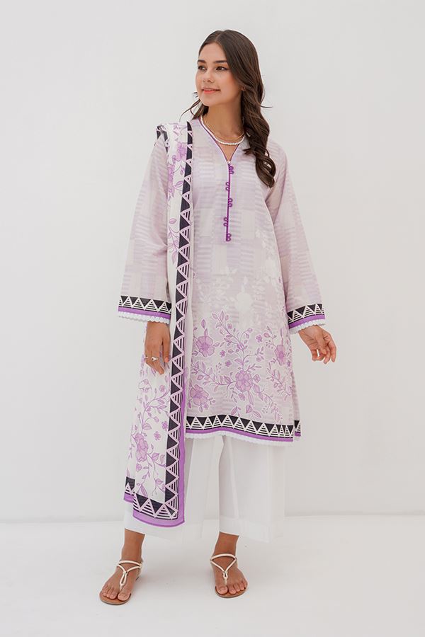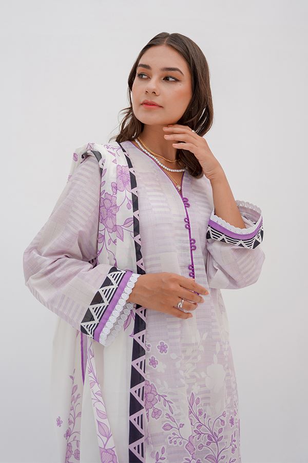 Shirt Dupatta - Lilac Purple - Lawn By Zellbury