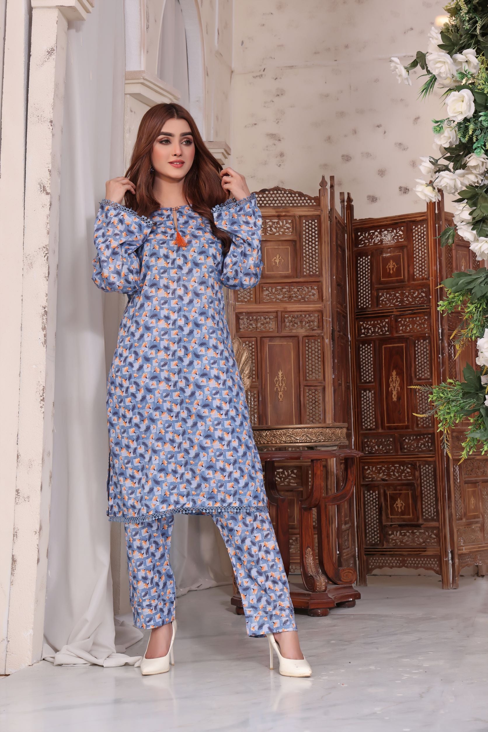 sky blue 2 piece printed lawn dress -Zainab Fazlani
