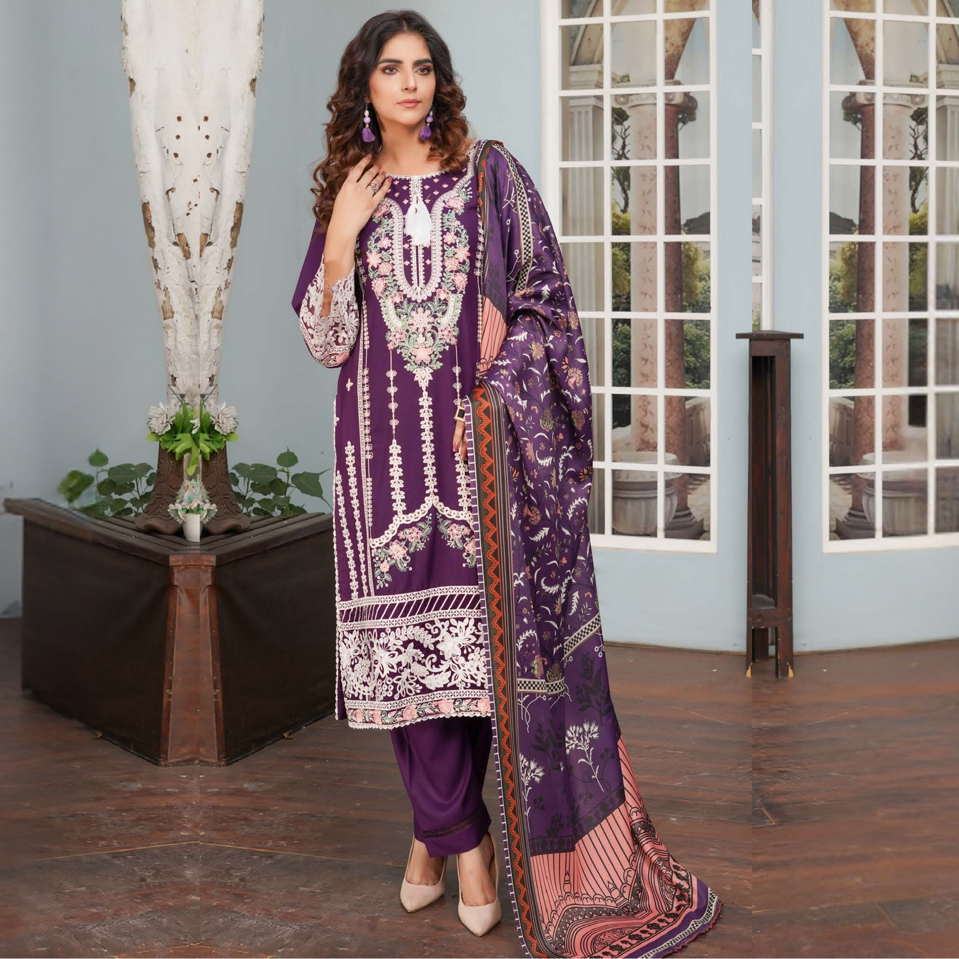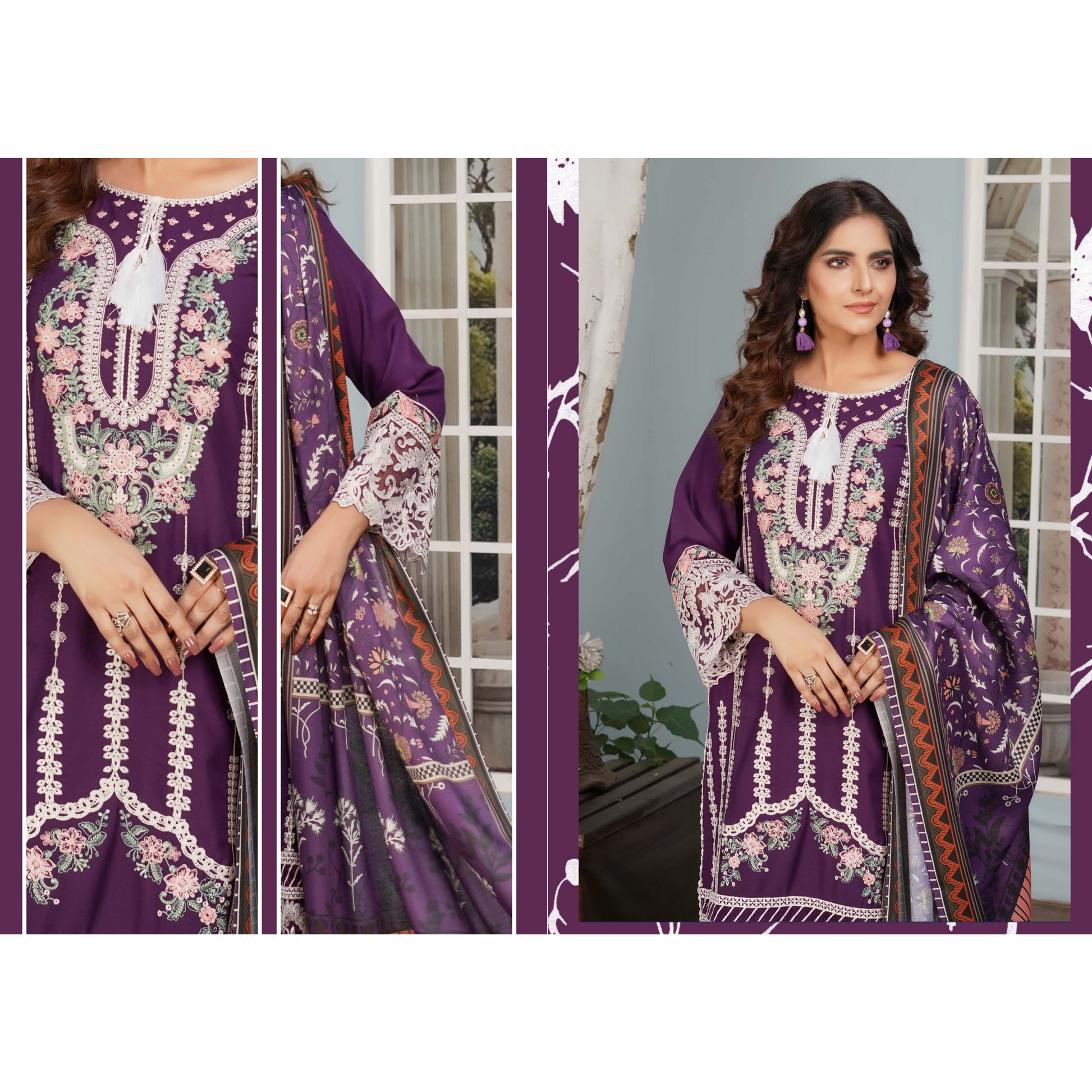 (PLUM) Heavy Embroidered Dhanak Ready to Wear Dress - MUNIRA