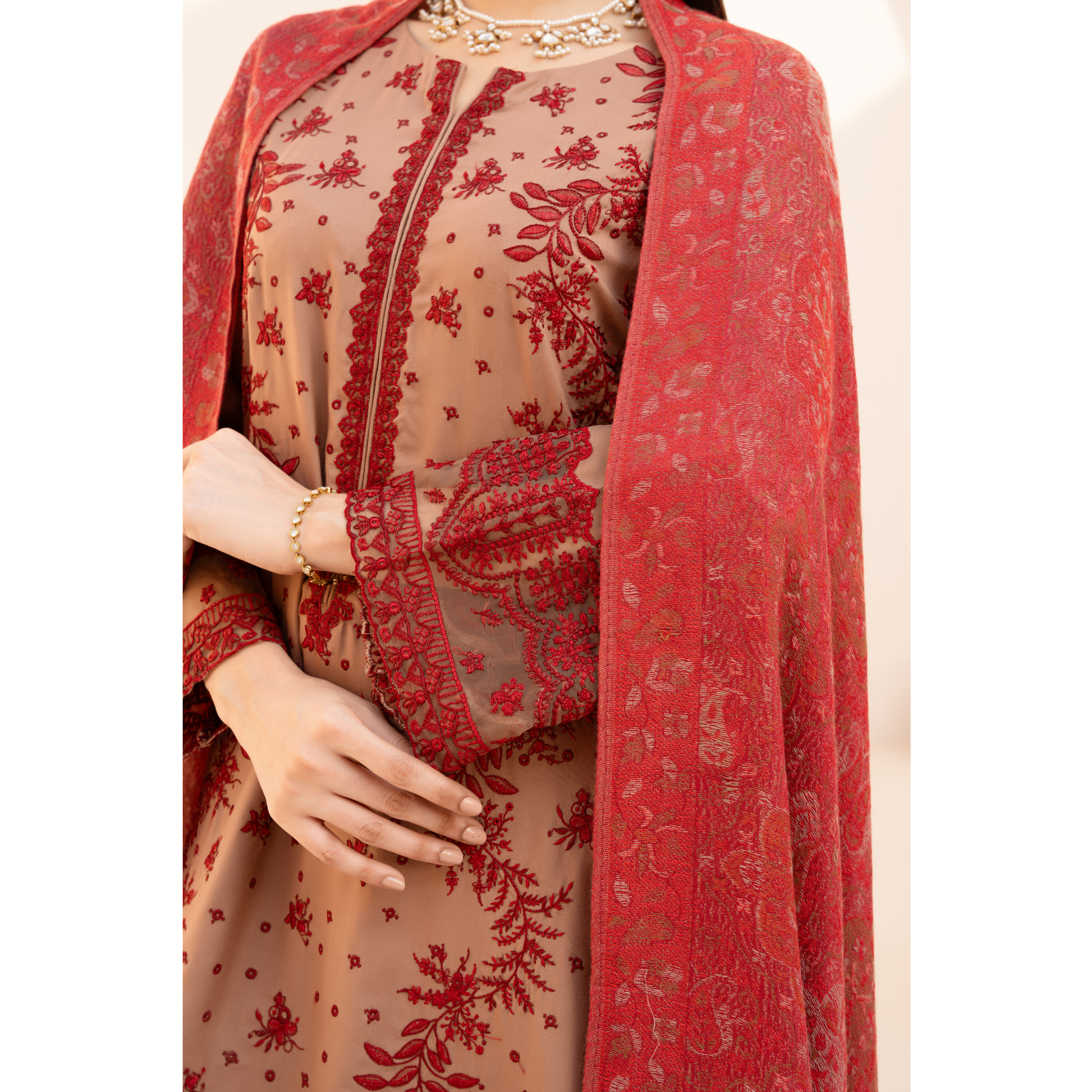 Introducing Dhanak Dress with Pashmina Shawl , Elevate your winter wardrobe with our 3 Piece Embroidered Winter Dhanak Suit — a perfect blend of elegance and comfort.
