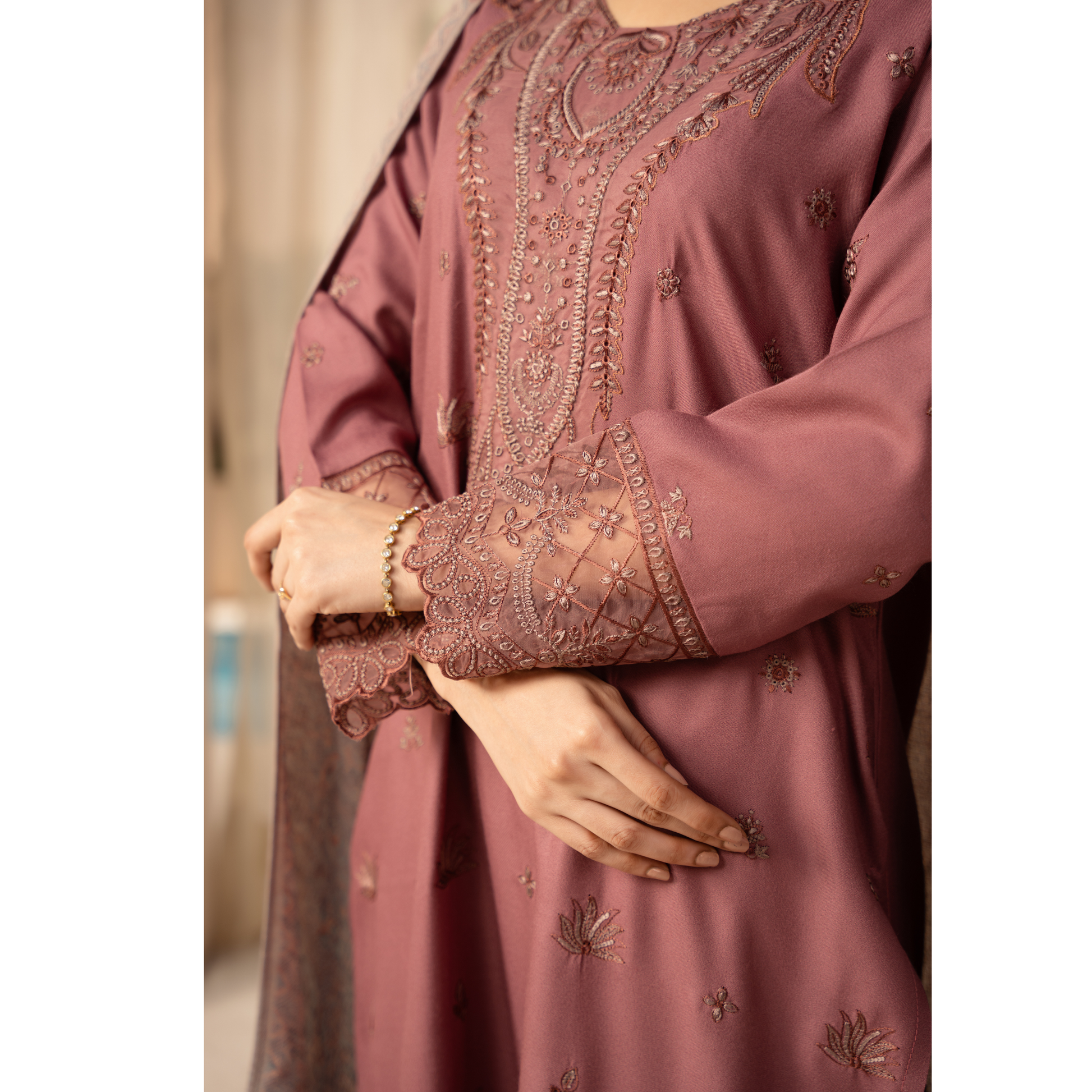 Ideal for daily wear, gatherings, and winter festivities, this suit combines timeless embroidery with cozy fabric, making it a must-have for the season.