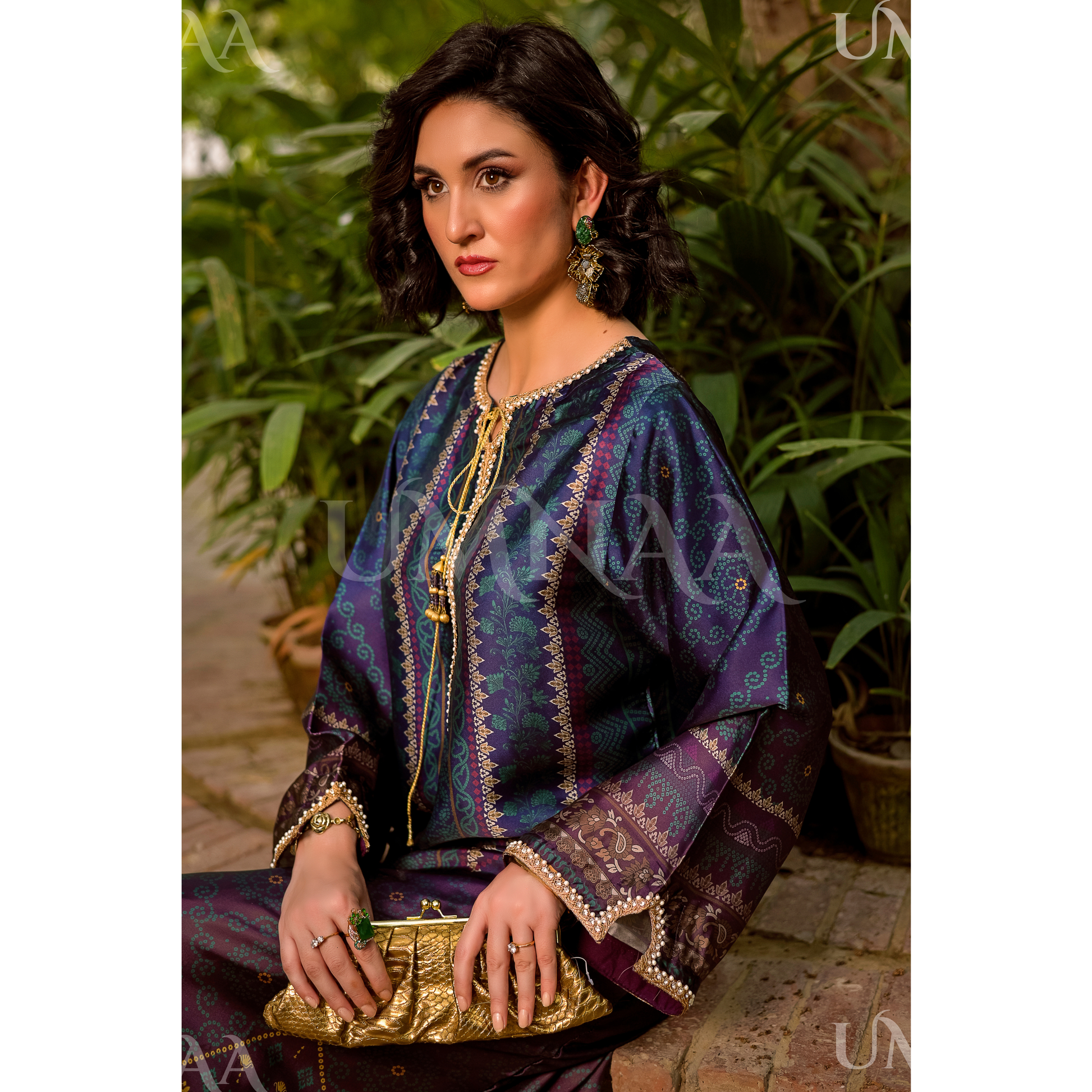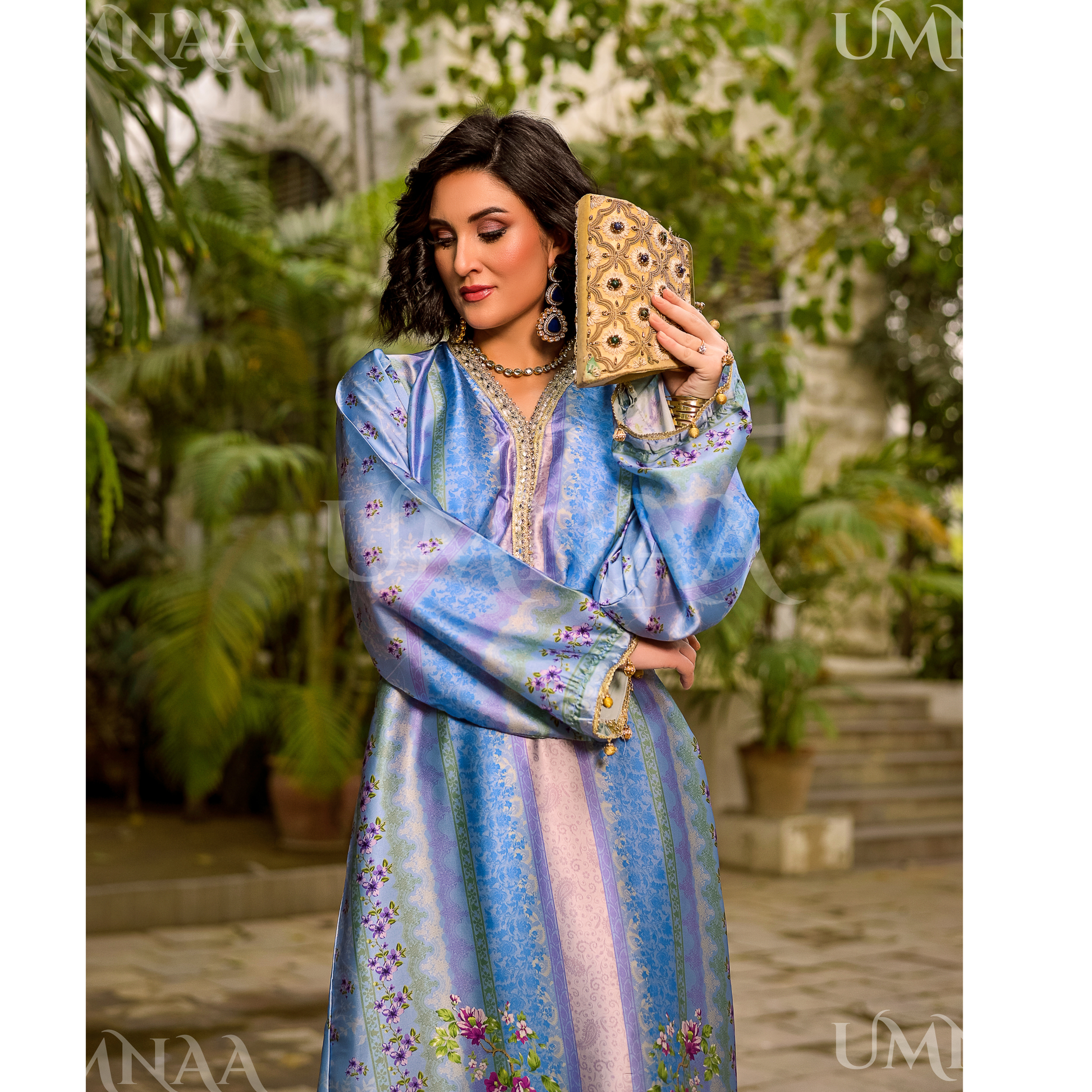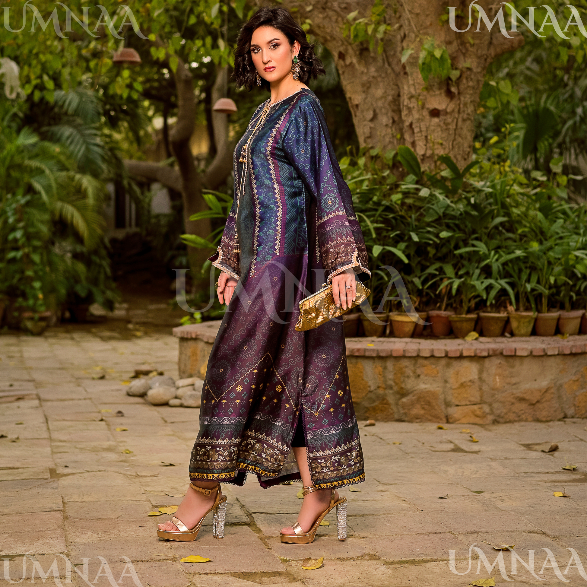 UA-160 Printed Silk kaftan Style long Maxi 1 PC | Ready to wear | Umnaa