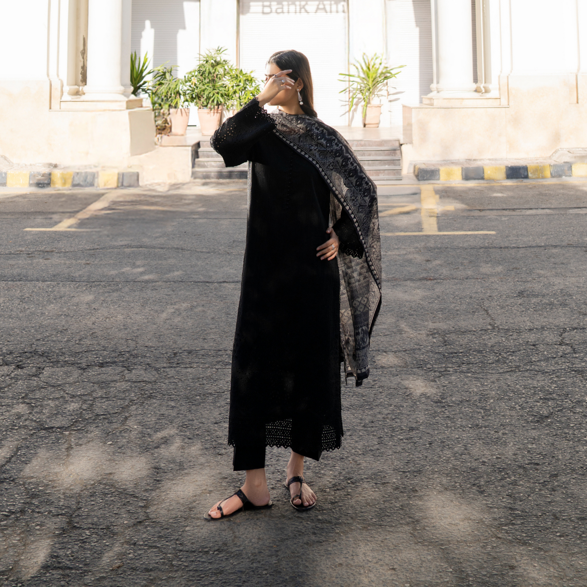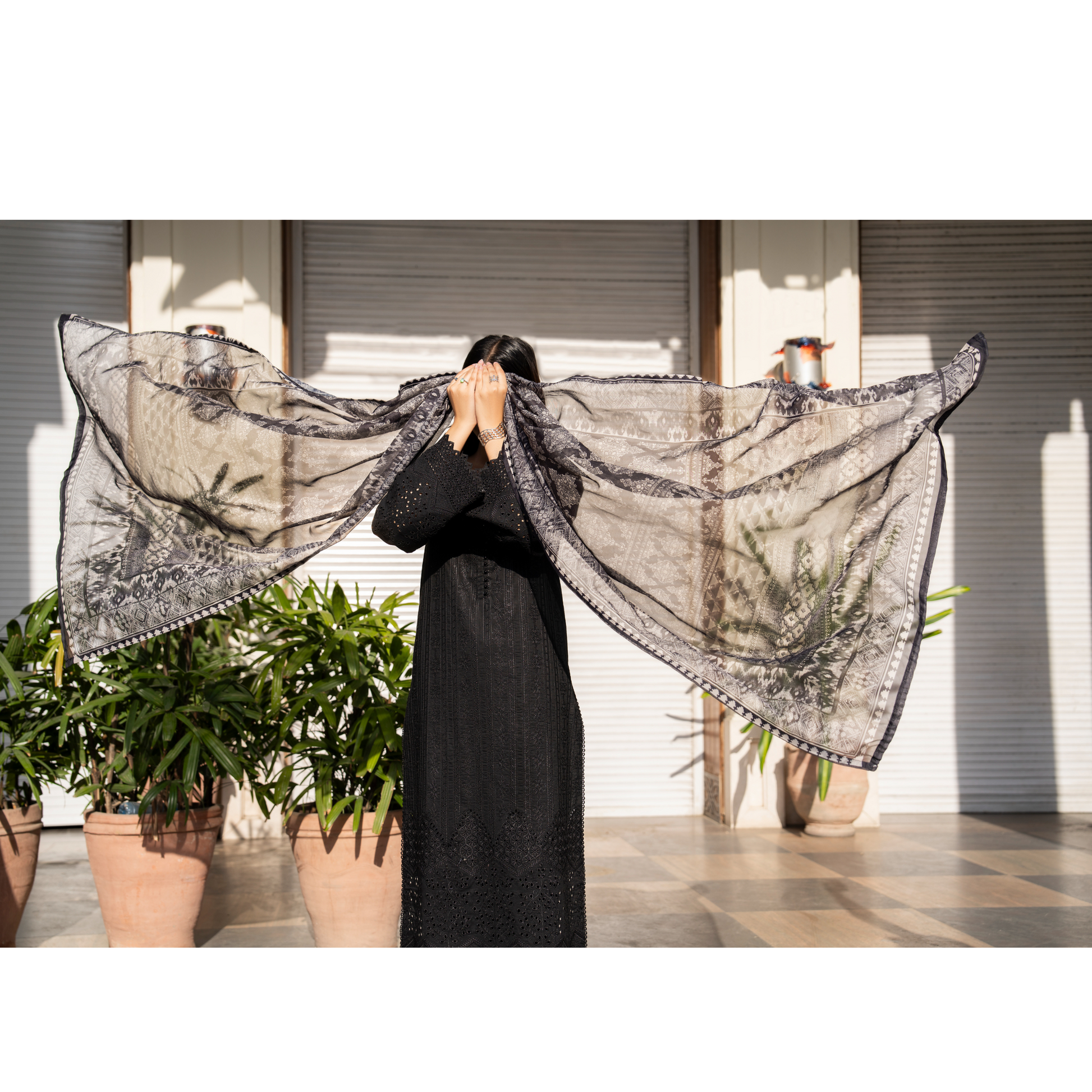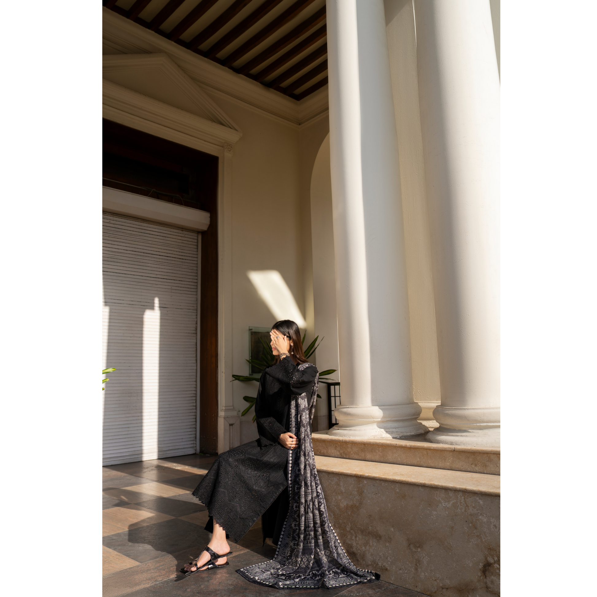 Introducing beautiful Muharram Monochrome Collection features graceful cotton lawn outfits designed in serene black and white tones, perfect for the solemnity and elegance of the season. Each dress carries a sense of quiet sophistication with delicate embroidery and traditional prints that reflect heritage and modesty. The designs highlight intricate floral and ethnic patterns across shirt and dupatta, paired with loose straight trousers or wide palazzos that enhance both comfort and elegance. The soft, breathable fabric ensures ease throughout the day while maintaining a refined appearance, making every piece a timeless expression of reverence and style