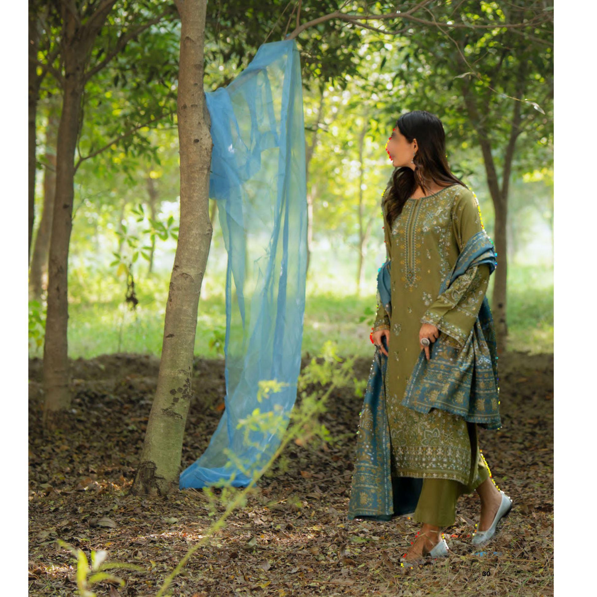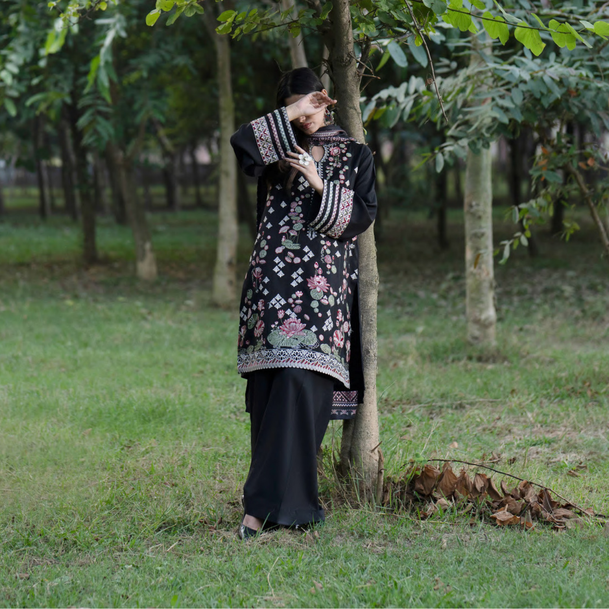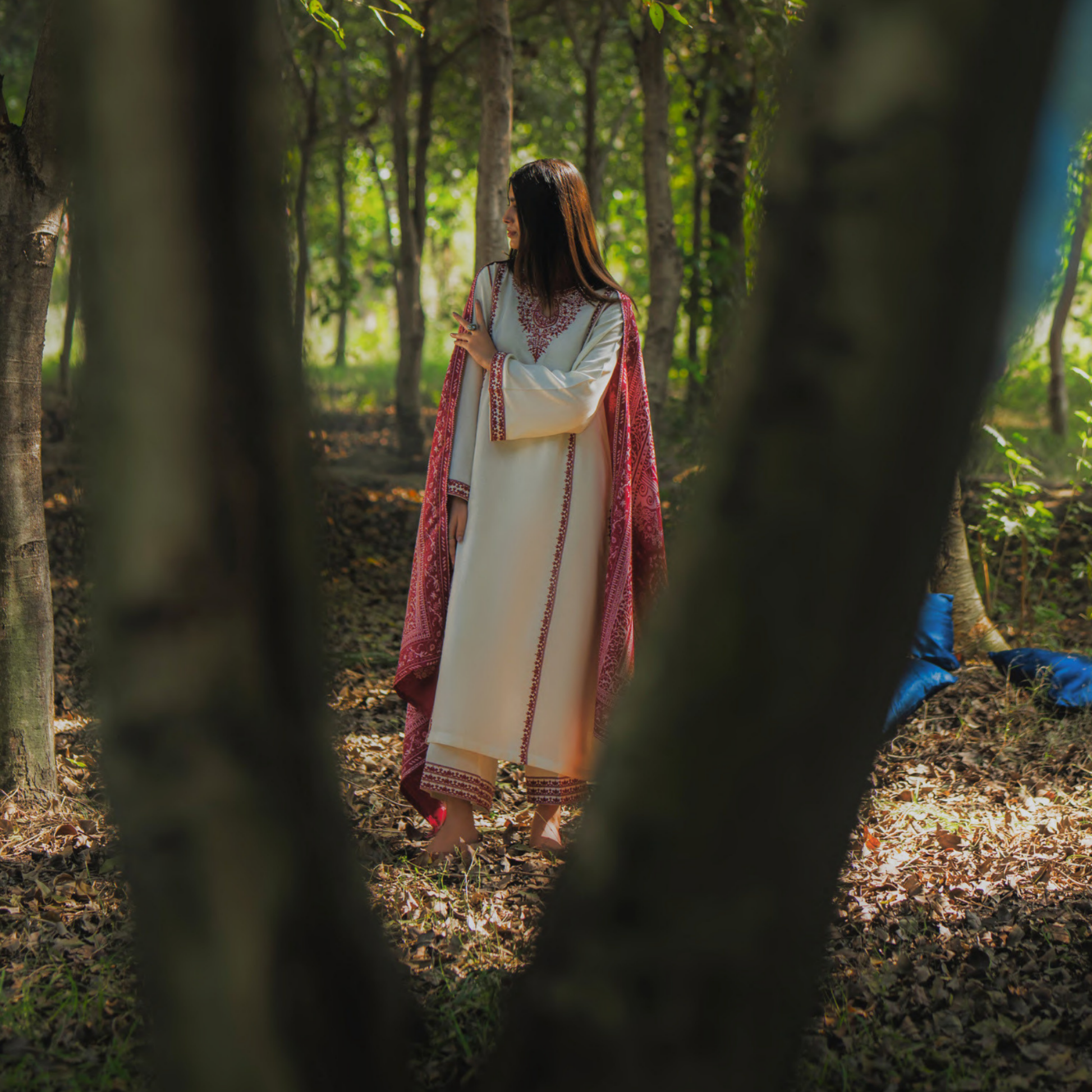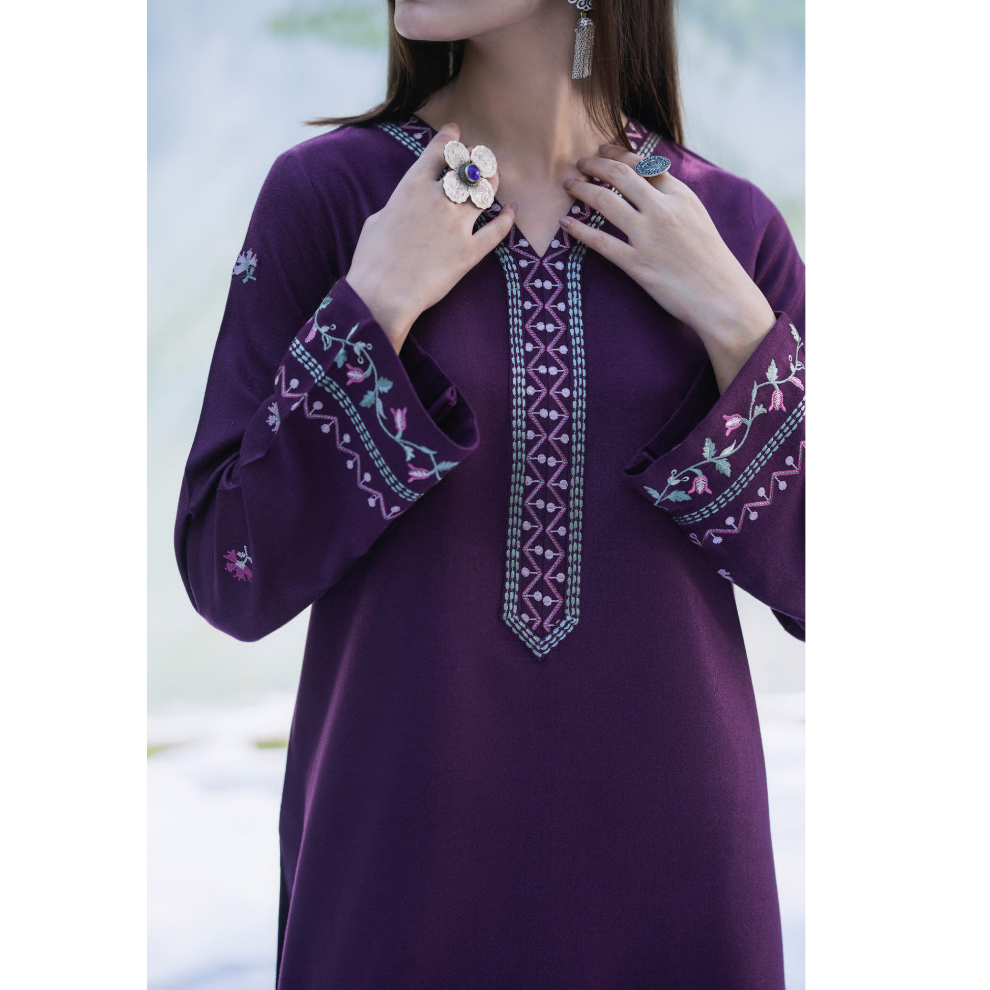 Experience the perfect blend of comfort and elegance with our Embroidered Dhanak Dress, beautifully paired with a premium Pashmina shawl. The shirt is crafted on soft Dhanak fabric, adorned with rich embroidery that enhances its winter charm. Its detailed motifs and refined borders create a timeless, luxurious look ideal for the season. The matching Dhanak trouser completes the outfit with a cohesive, warm feel. Draped over it is a stunning Pashmina shawl, woven with traditional patterns that add depth and sophistication while keeping you cozy. This ensemble captures the true essence of winter style—warm, graceful, and effortlessly classy.