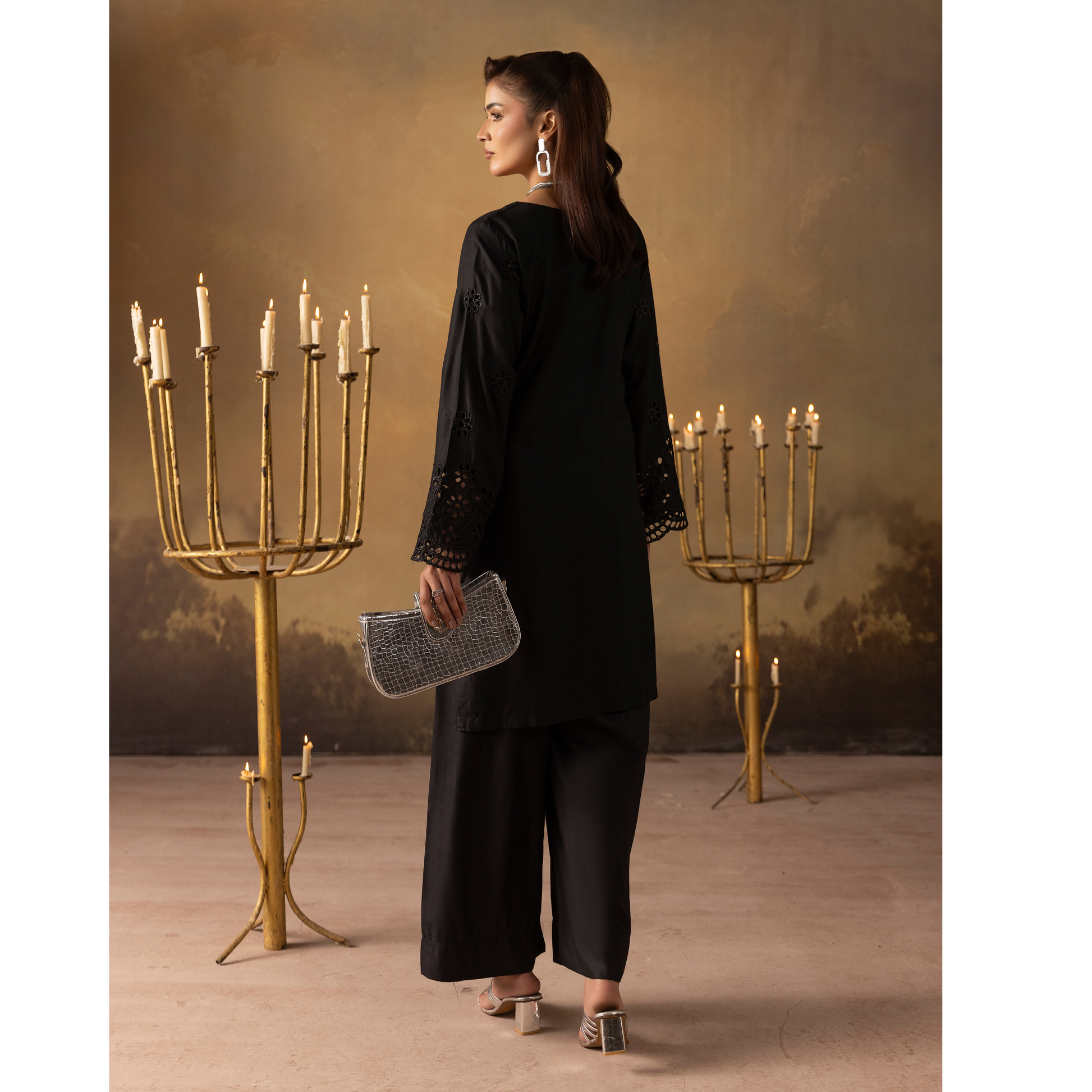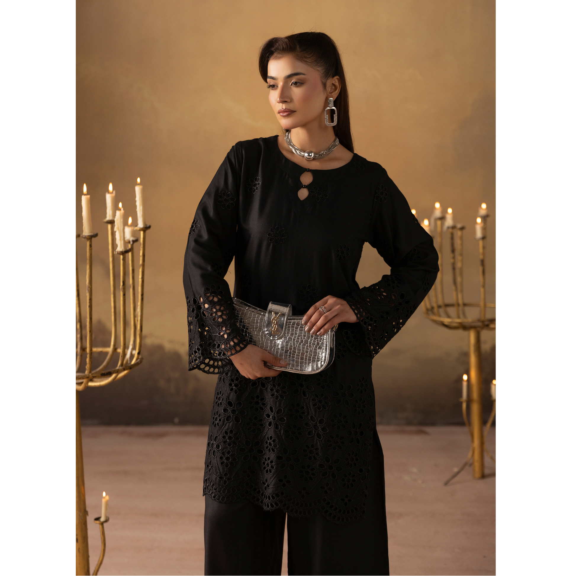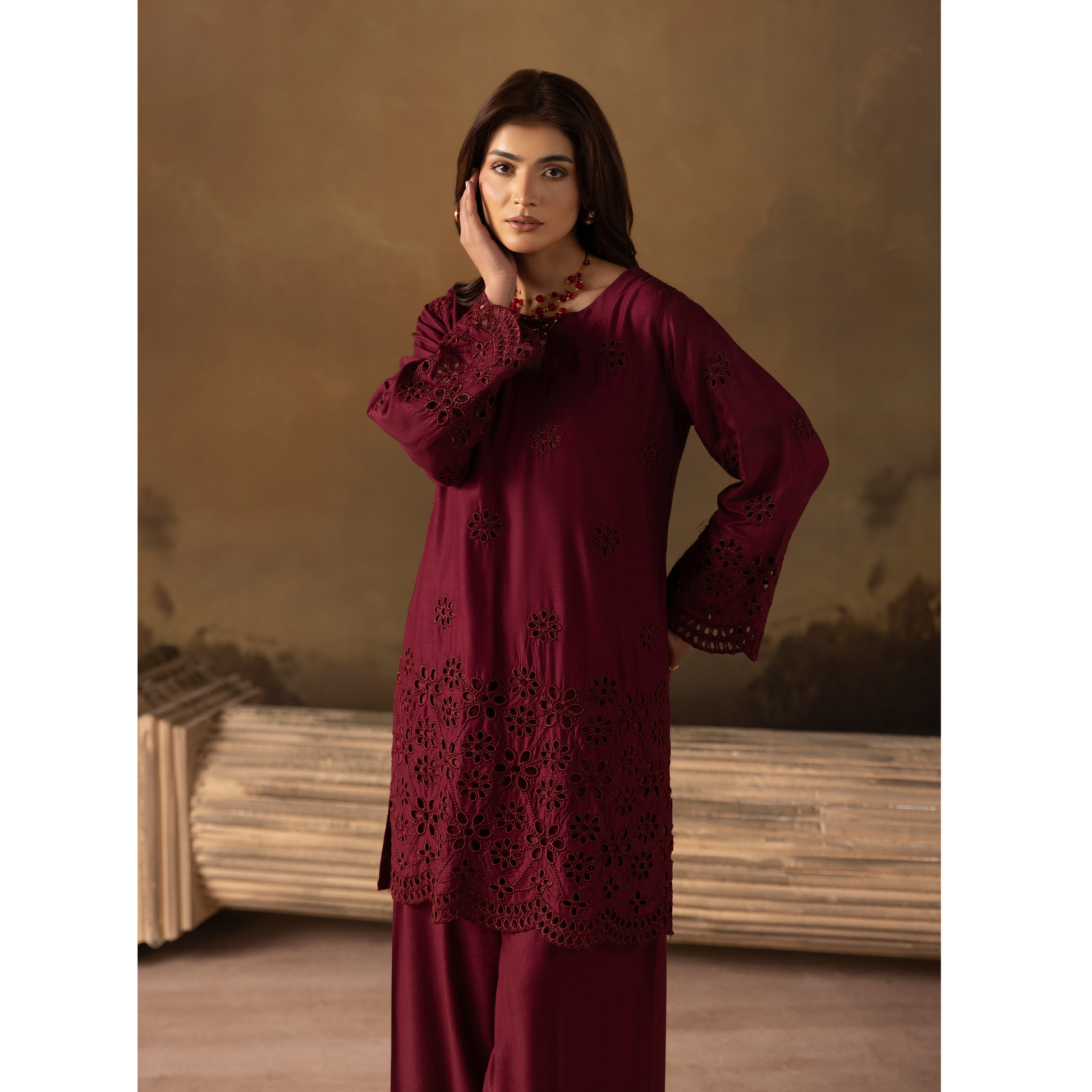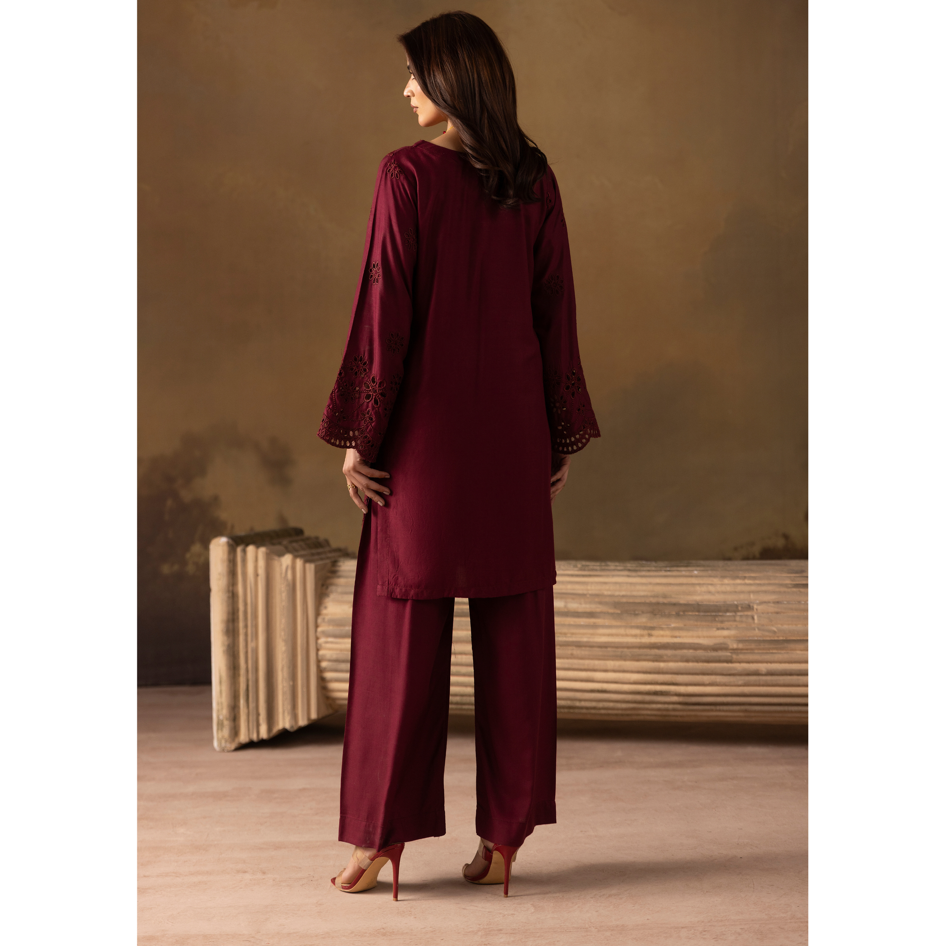 Paired with relaxed, wide-leg trousers for effortless comfort and a modern silhouette, this co-ord set is perfect for both day and evening wear. Its lightweight texture and graceful detailing make it ideal for festive gatherings, semi-formal occasions, and elegant everyday styling.