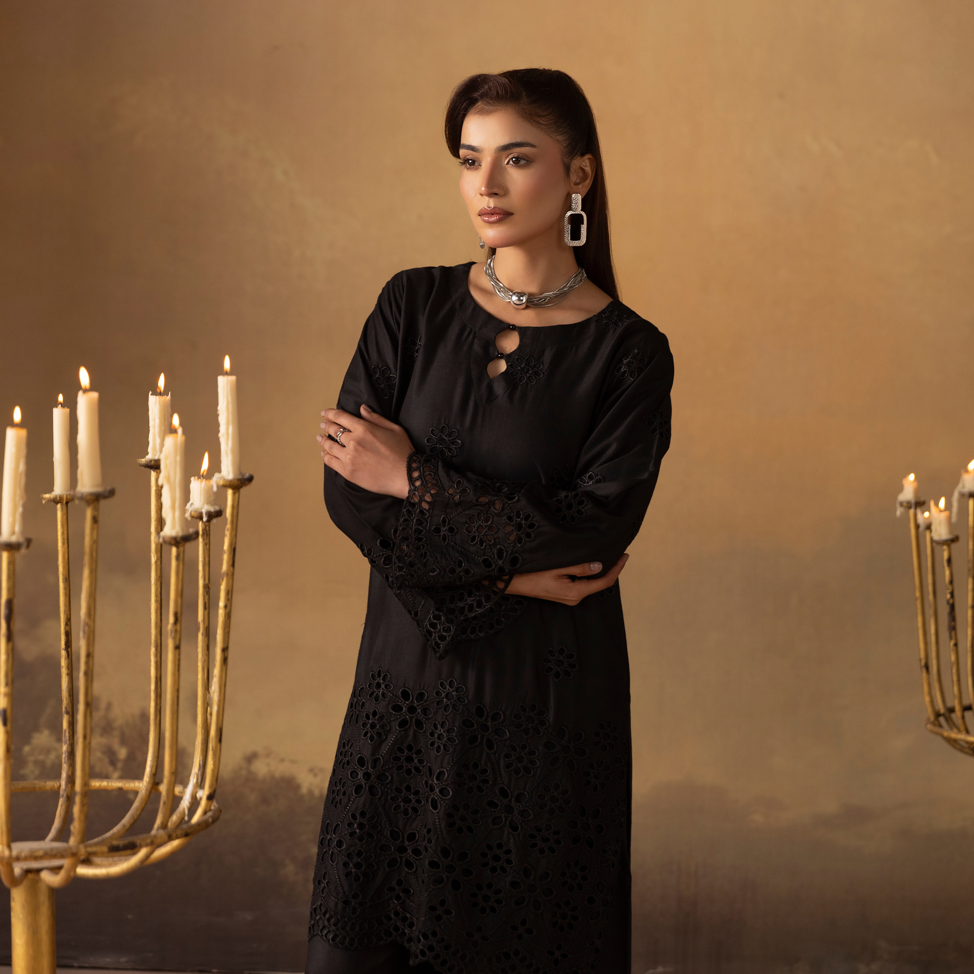 Introducing "Luxkari" Co Ords by Simrans elegant two-piece co-ord set , crafted from breathable linen fabric, featuring delicate all-over Chikankari embroidery that adds a refined, timeless charm. The straight-cut kurta is designed with a subtle neckline slit and intricately embroidered floral motifs, finished with a beautifully scalloped, cutwork hem and matching embroidered sleeves.