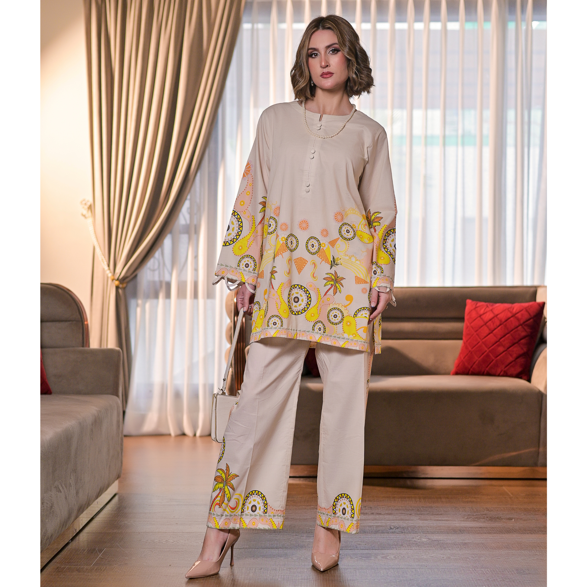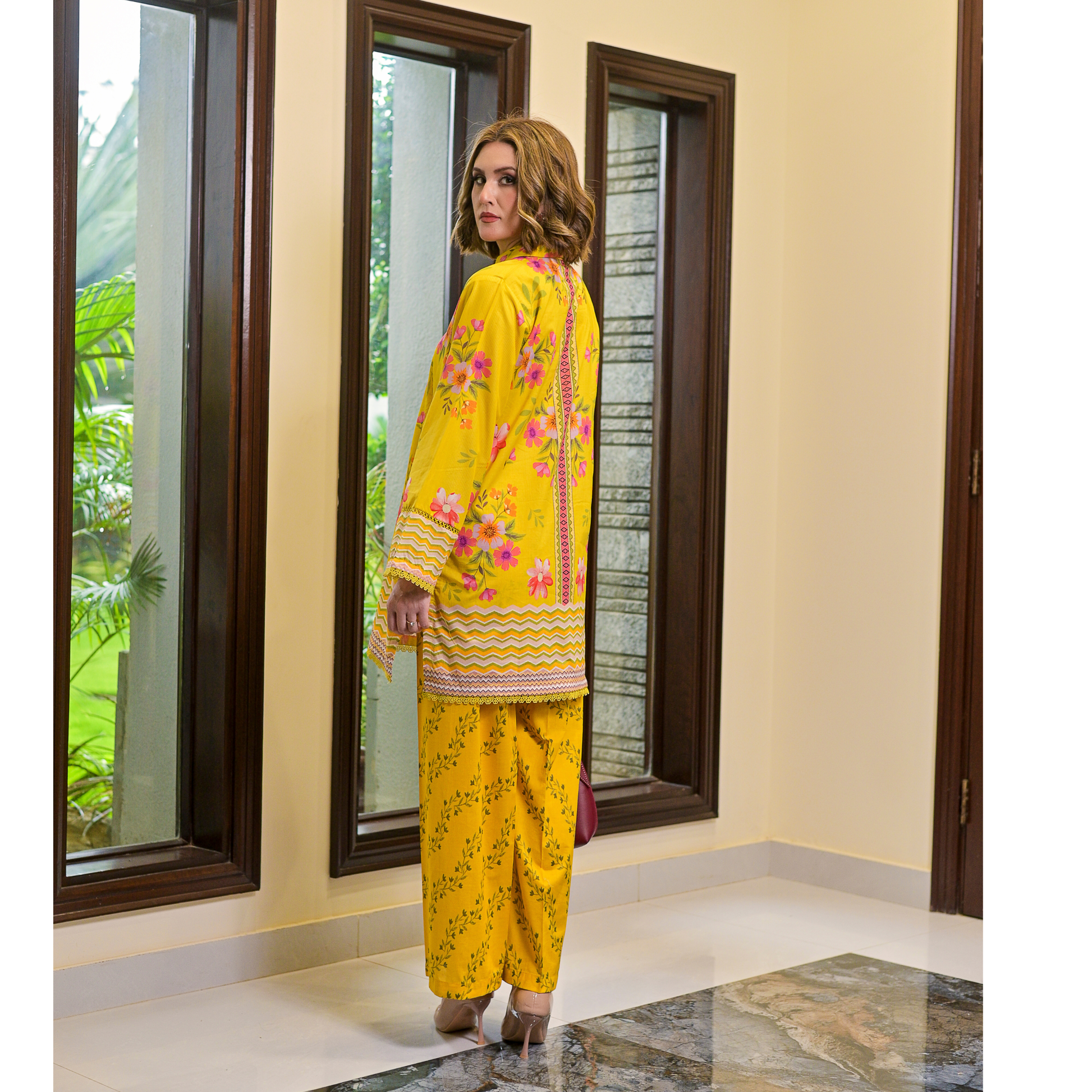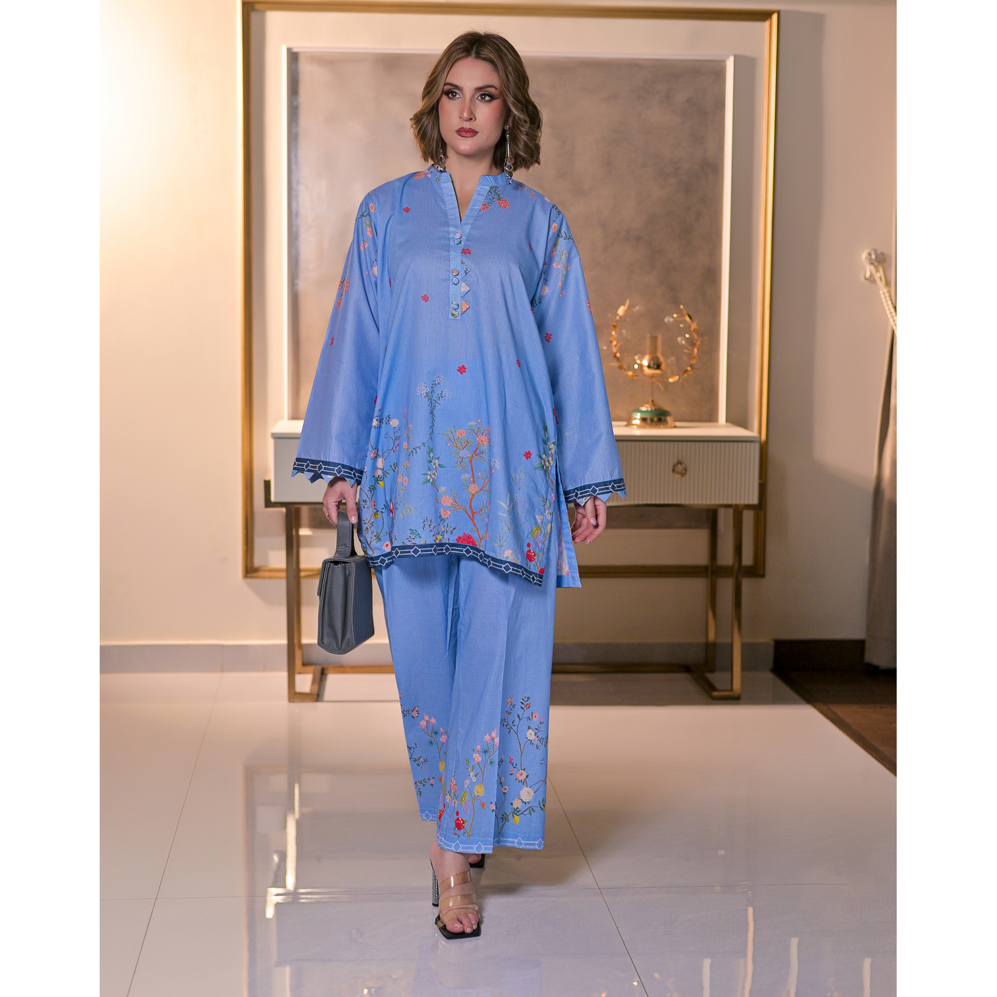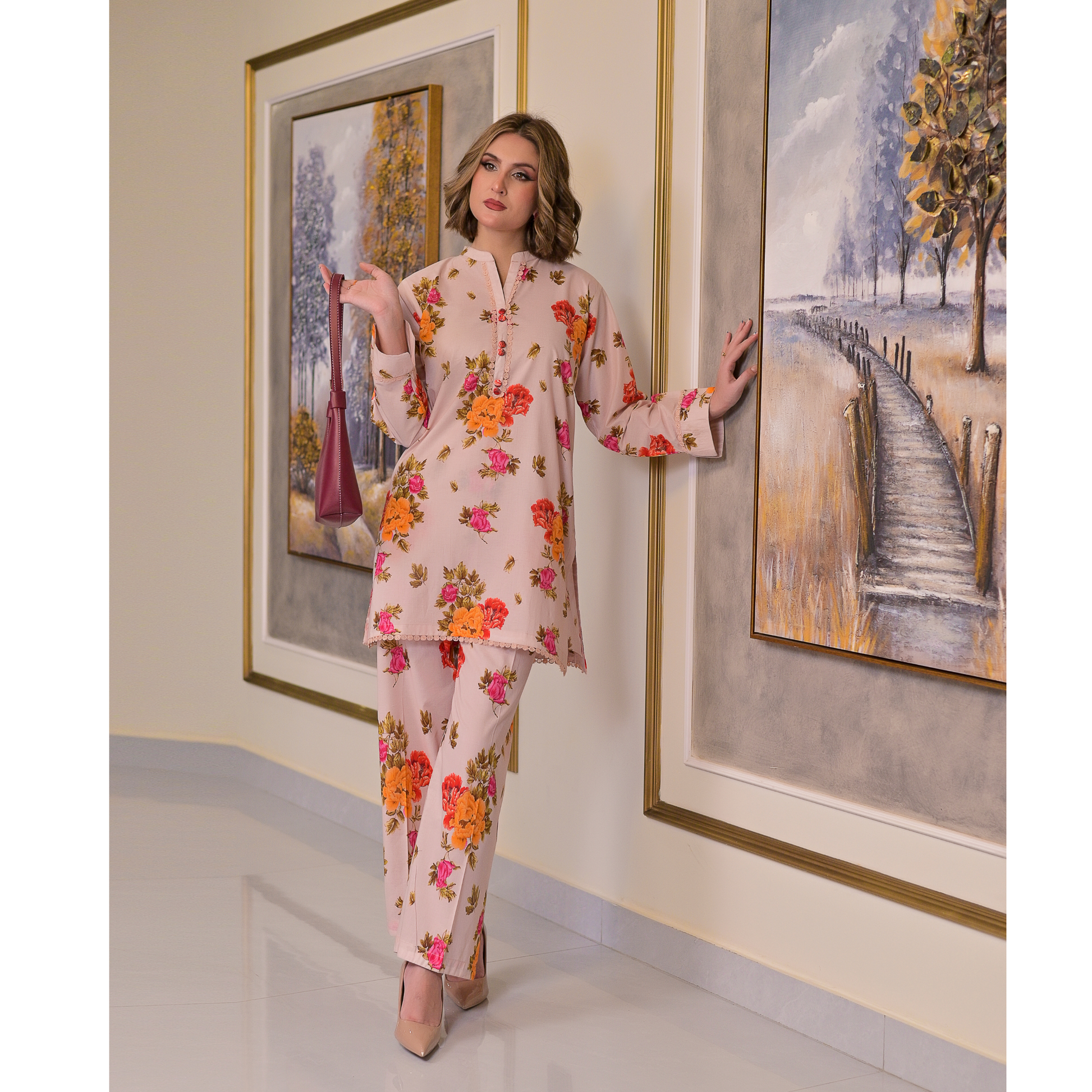 Introducing a vibrant range of Cambric Cotton Printed Co-Ord Sets designed to bring comfort and charm to your everyday wardrobe. Each ensemble features a soft, breathable Cambric Cotton fabric that offers a flattering fall and all-day ease. The shirts are adorned with detailed digital prints inspired by florals, foliage, and ethnic patterns, thoughtfully spread across bold and pastel color palettes. Trousers are coordinated with matching or complementing prints to complete the cohesive look. Finishing touches like lace trimmings, sleek piping, and printed borders enhance the overall design, making these sets a perfect choice for casual wear, Winter outings, or festive daytime events.