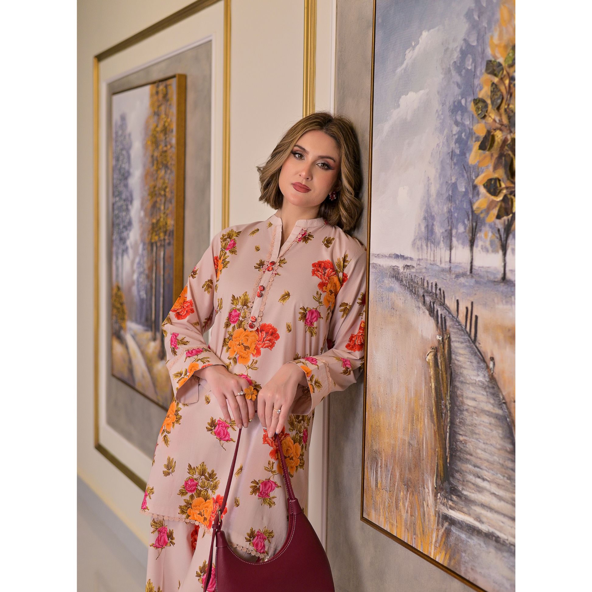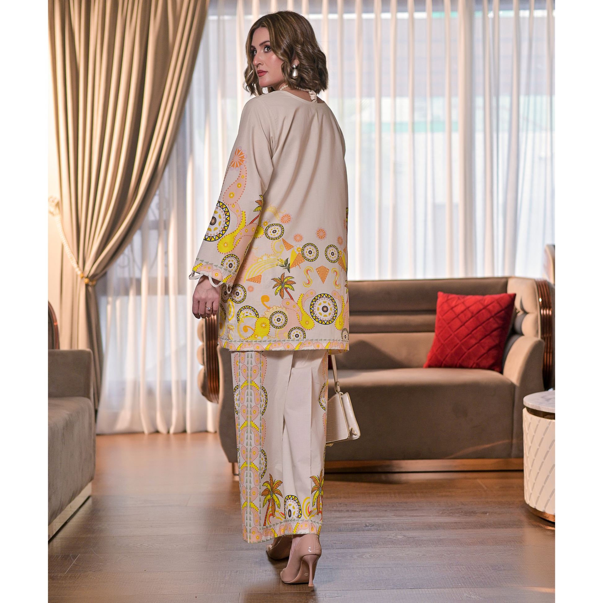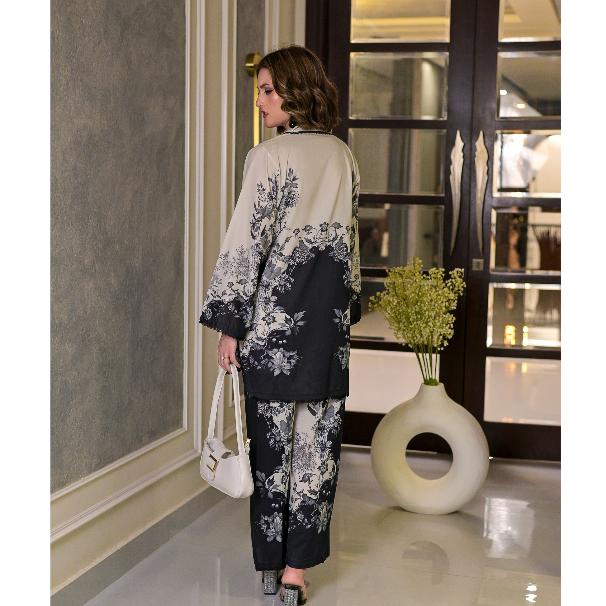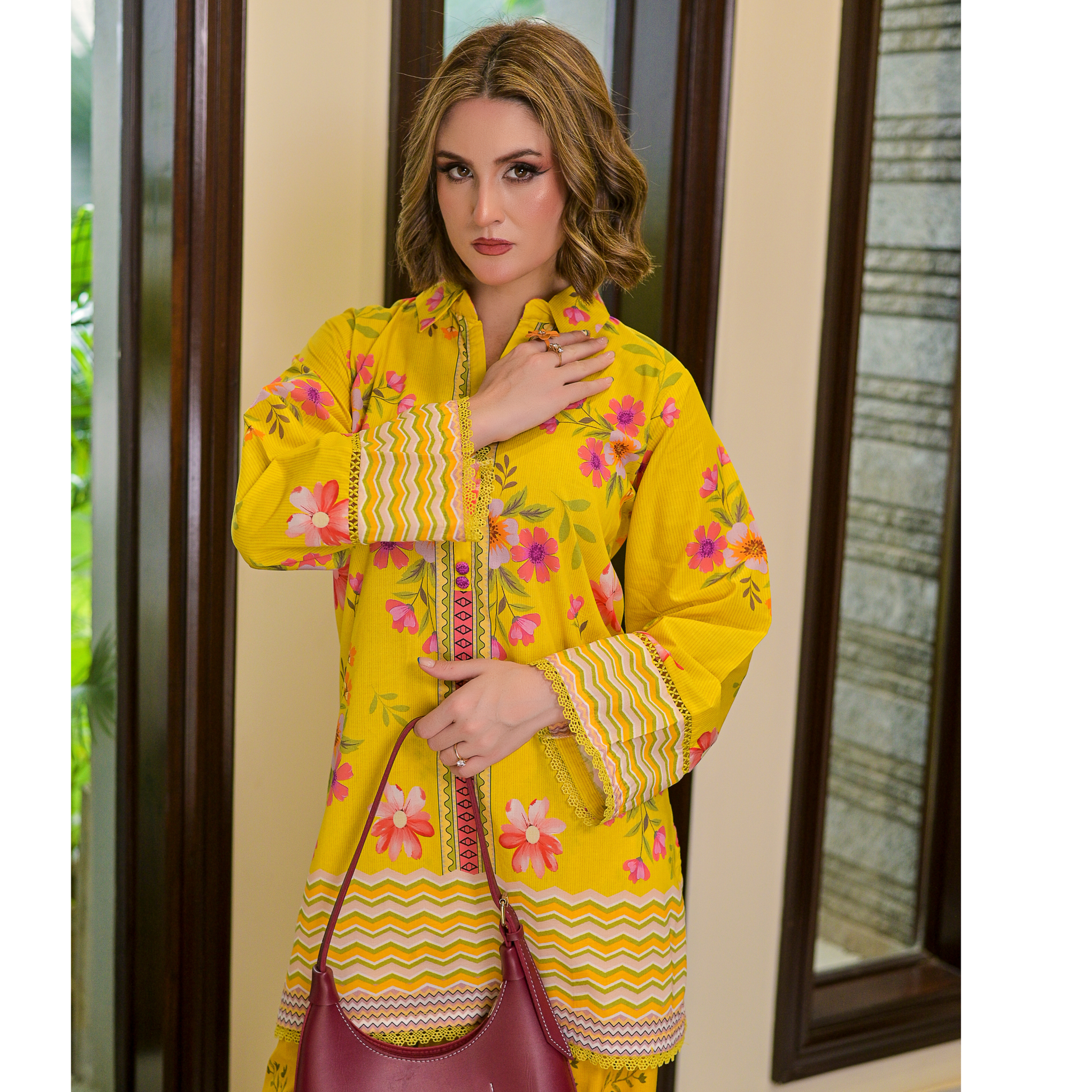 Introducing a vibrant range of Cambric Cotton Printed Co-Ord Sets designed to bring comfort and charm to your everyday wardrobe. Each ensemble features a soft, breathable Cambric Cotton fabric that offers a flattering fall and all-day ease. The shirts are adorned with detailed digital prints inspired by florals, foliage, and ethnic patterns, thoughtfully spread across bold and pastel color palettes. Trousers are coordinated with matching or complementing prints to complete the cohesive look. Finishing touches like lace trimmings, sleek piping, and printed borders enhance the overall design, making these sets a perfect choice for casual wear, Winter outings, or festive daytime events.