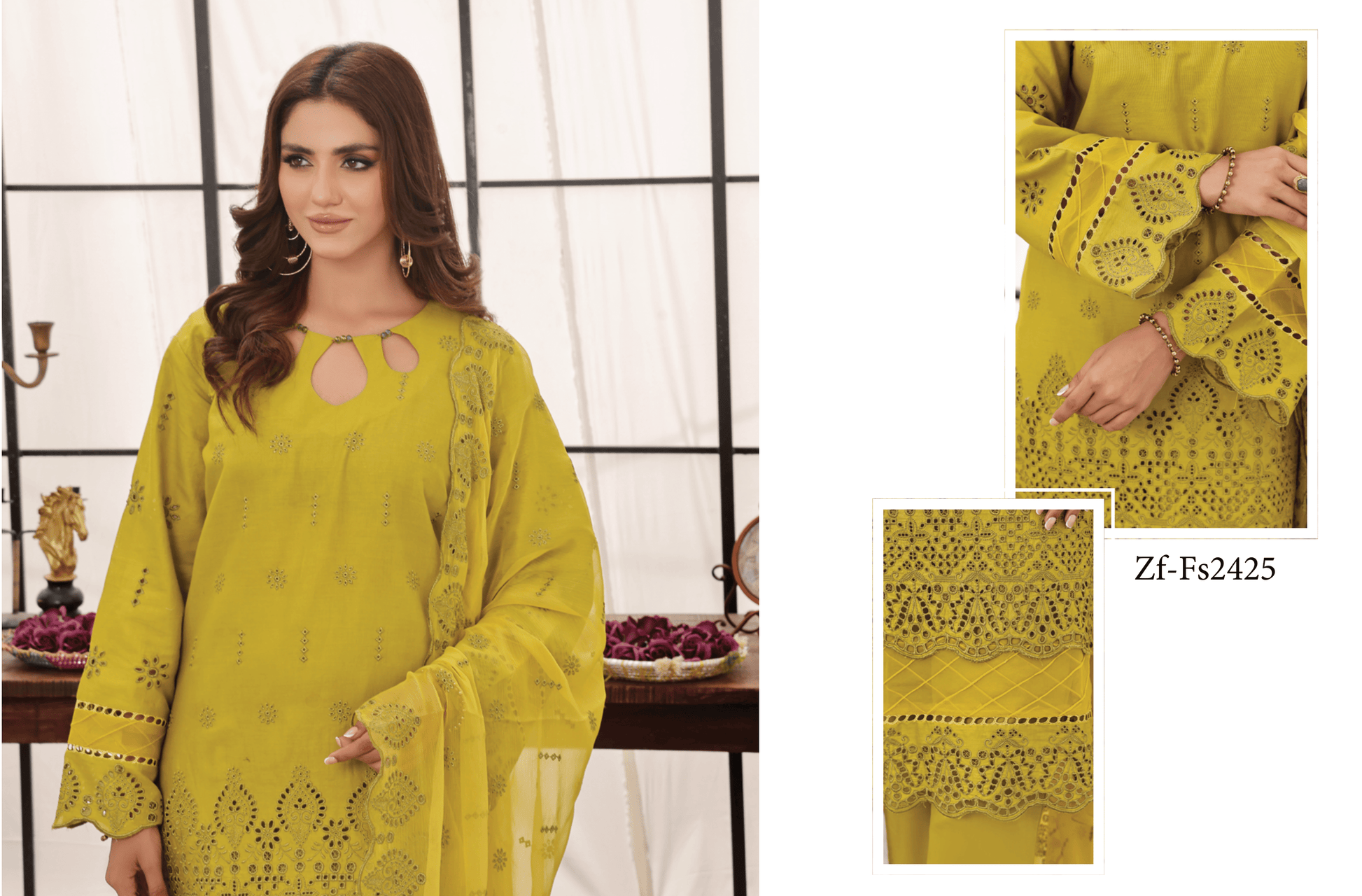 Zf-Fs2425 Premium Chikenkari 3 Pc Lawn Collection By Zainab Fazlani